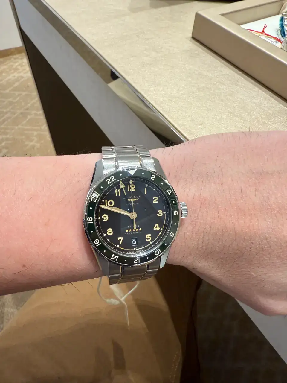 El longines comodisimo por ser titanio, como no llevar nada, y la esfera negra con diales dorados una pasada.