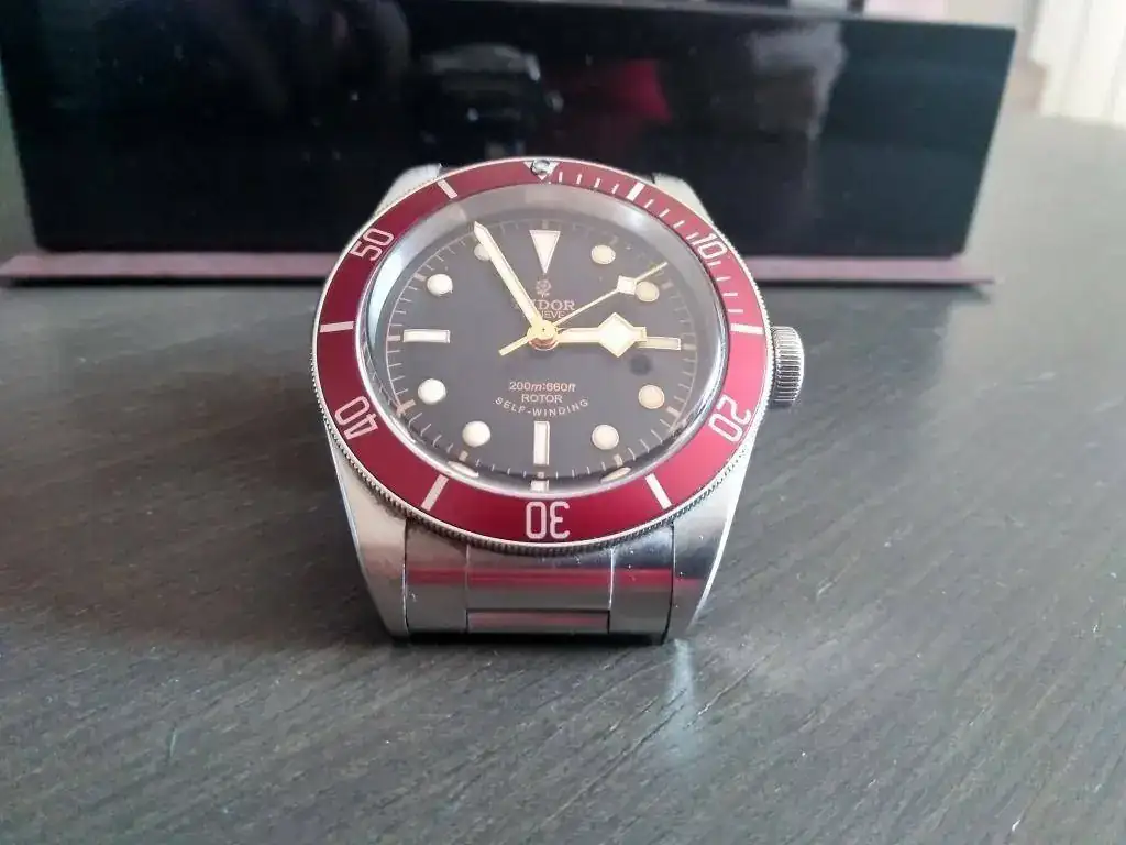 Sale para la venta, muy a mi pesar, mi Tudor Black Bay ETA 2824 en color burdeos. Debido a su gran tamaño junto con mi muñeca pequeña tengo que decir que pasa muchísimo menos tiempo del que me gustaría conmigo.