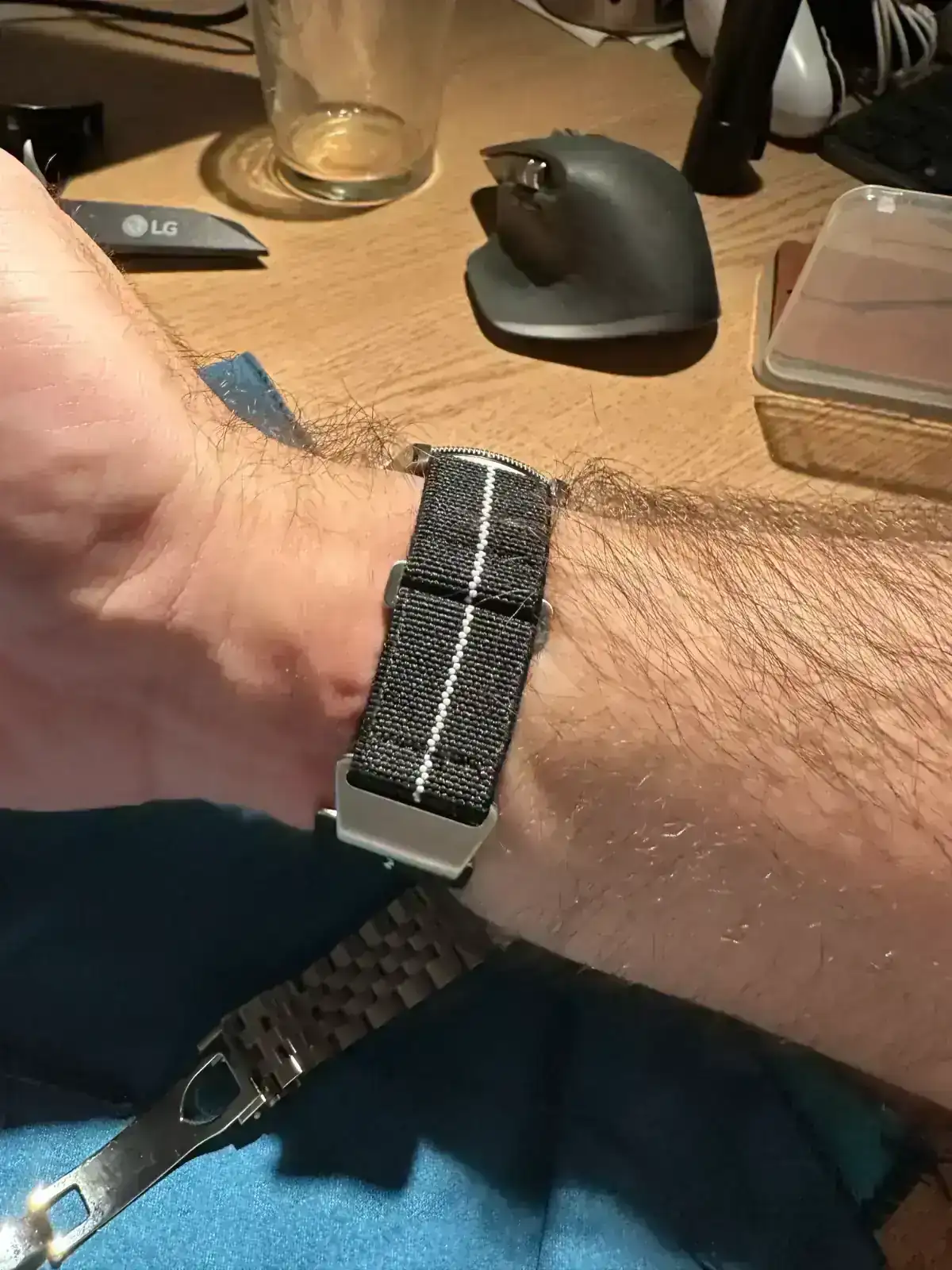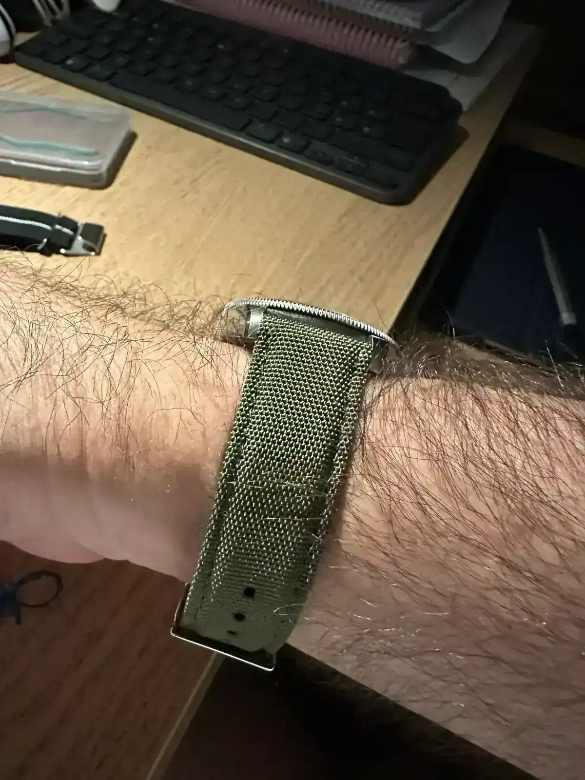 Adjunto fotos del reloj con esta nueva correa (subo estas fotos con diferentes correas por si ayudo a alguien con ideas de estilos que voy poniendo).