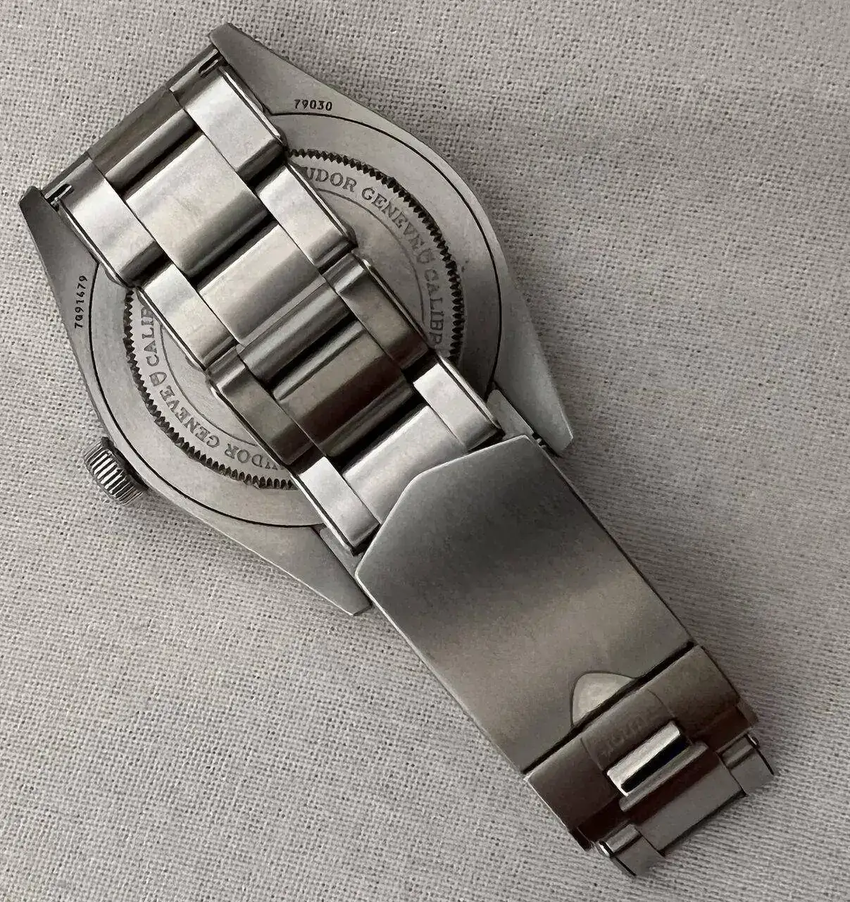 Brazalete: acero con ribetes, símbolo del reloj. Se incluyen todos los eslabones