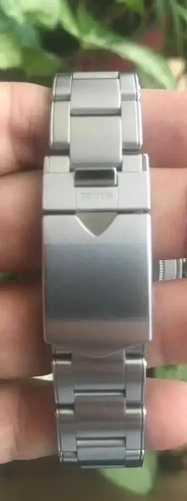 Ha tenido un uso muy escaso porque mis relojes vintage no le dan paso y por eso lo saco a la venta, eso no le exime de tener algunos pelillos inevitables en el cierre que he intentado sacar en foto no sin cierta dificultad. También he conseguido localizar un micro pelo que me había pasado desapercibido justo al extremo opuesto de la corona ( también en las fotos pero difícilmente visible). Por lo demás consideraría el reloj de autentico reestreno.