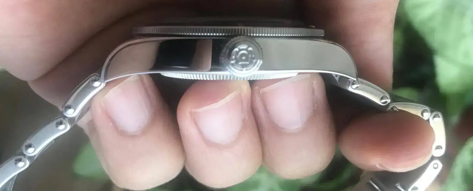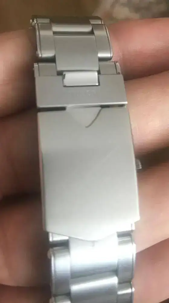 En la caja se guardan todos los eslabones sobrantes del brazalete que ahora mismo esta ajustado para una muñeca de 16,5 cm de contorno.