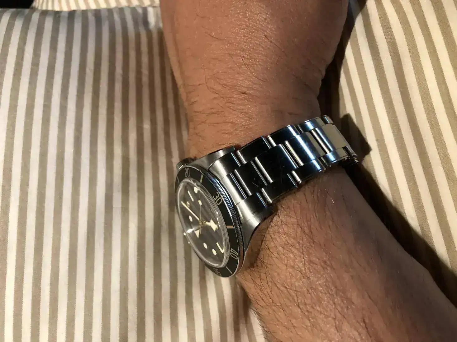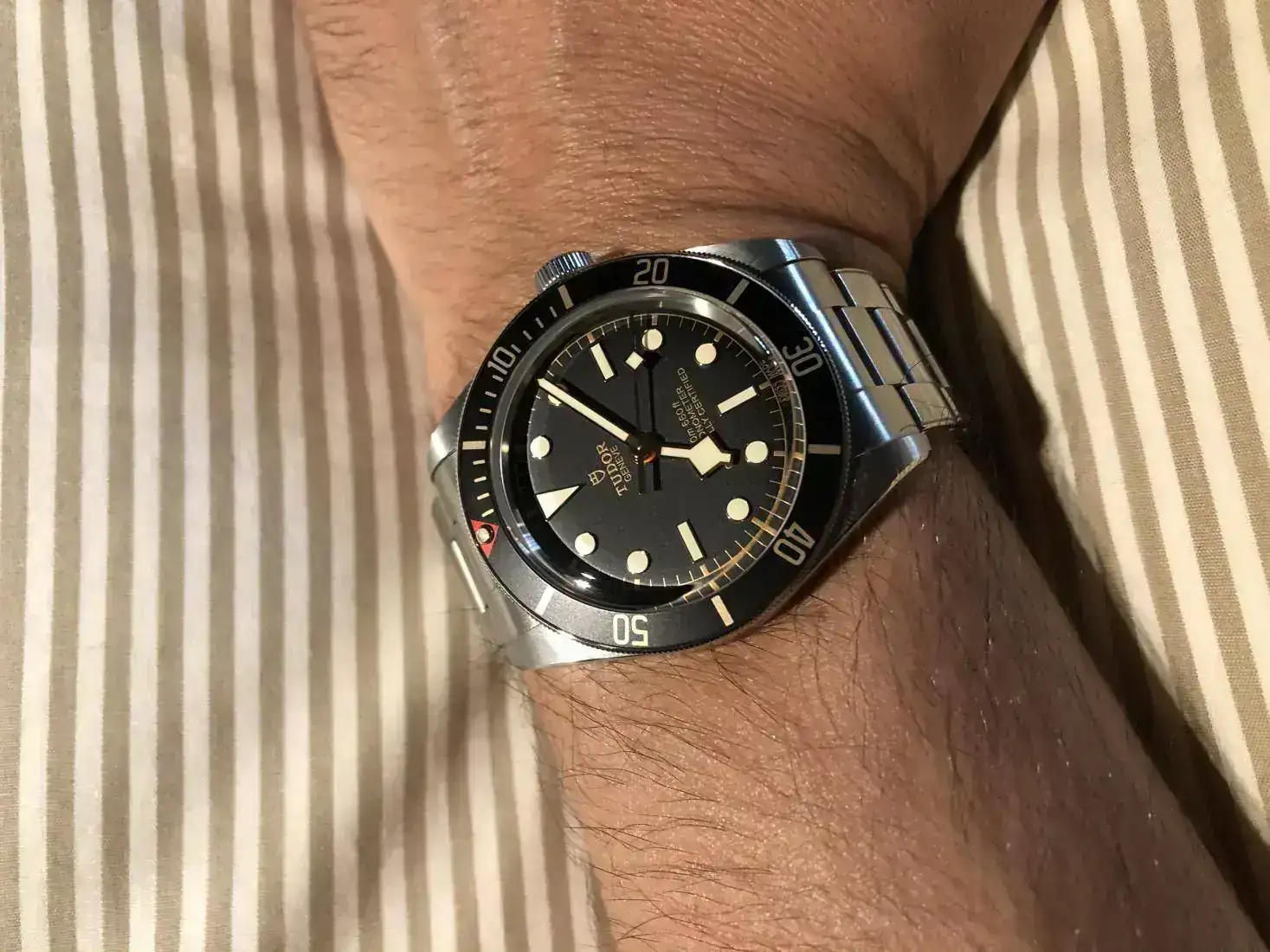 El otro dia fui a probarme el pepsi de Tudor ( demasiado grande para mi) y solo ver el BB58 negro me lo compre y con descuento . Me parece un relojazo ( el unico que tengo sin coronita) .Tiene unas medidas casi identicas que el chapitas. Otro aspecto interesante es el nuevo calibre , si resulta como se dice excepcional tiene pinta de convertirse en un reloj realmente interesante.