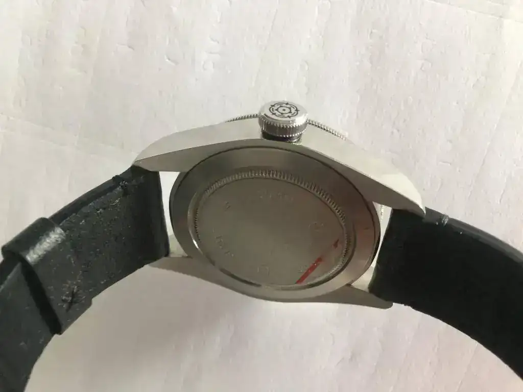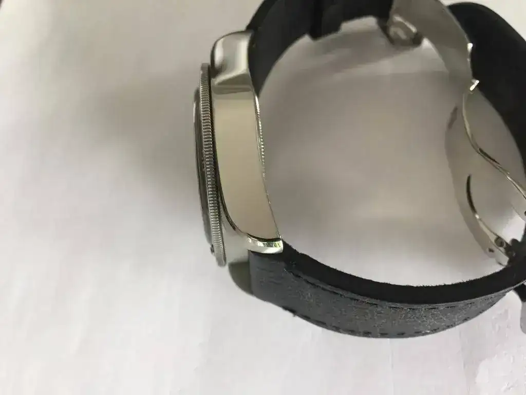 Tiene un pequeño arañazo en la zona pulida a espejo debajo de la corona que he intentado mostrar en las fotos.