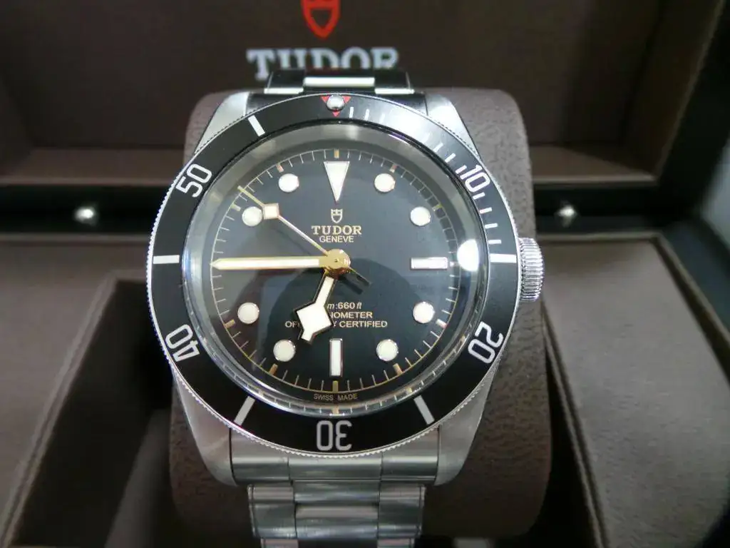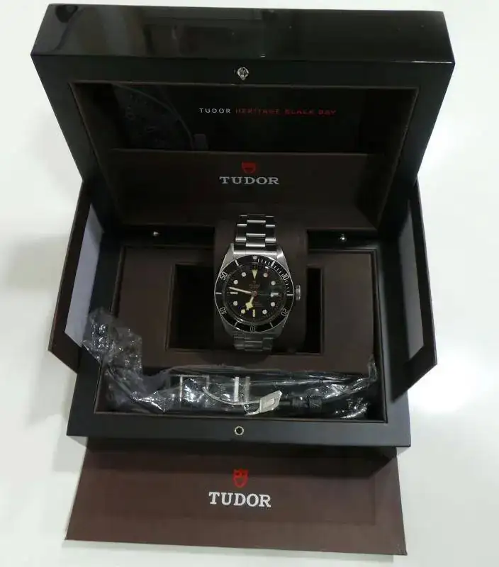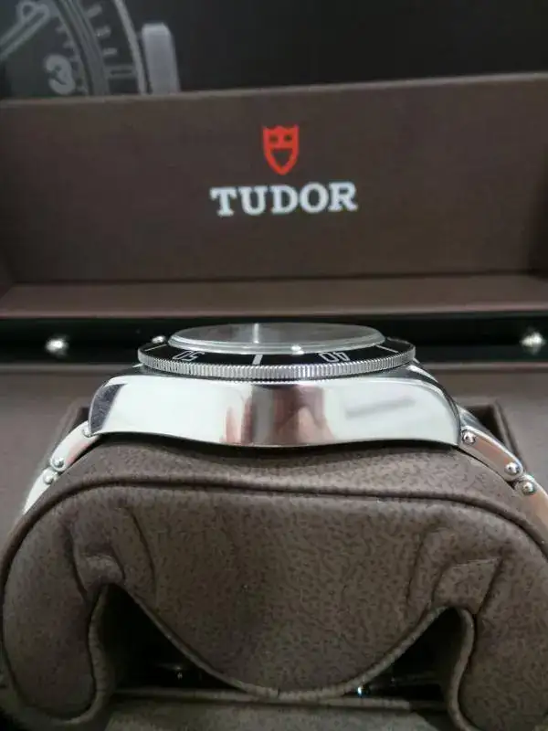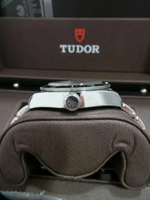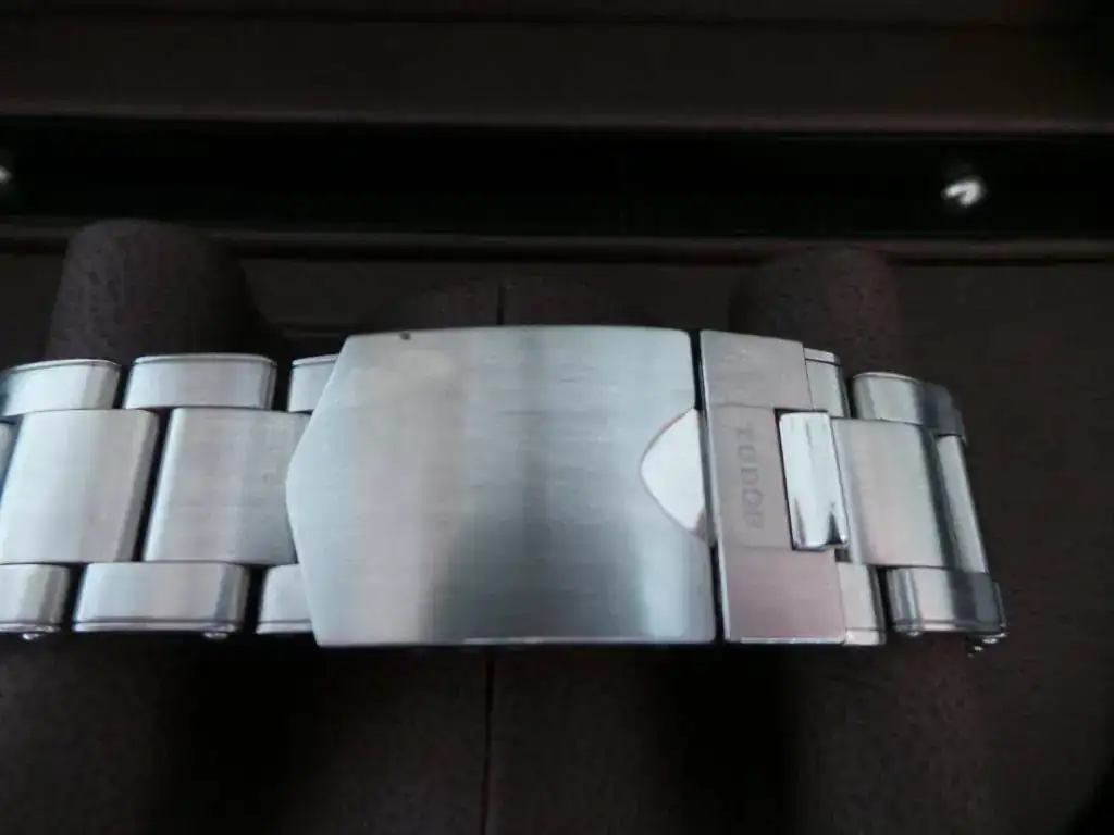 Viene con su armis de acero original con remaches, y una Nato original Tudor de color negro sin estrenar. A este conjunto, con su caja y tarjetas como dotación completa, le pongo un precio de 2300 euros.