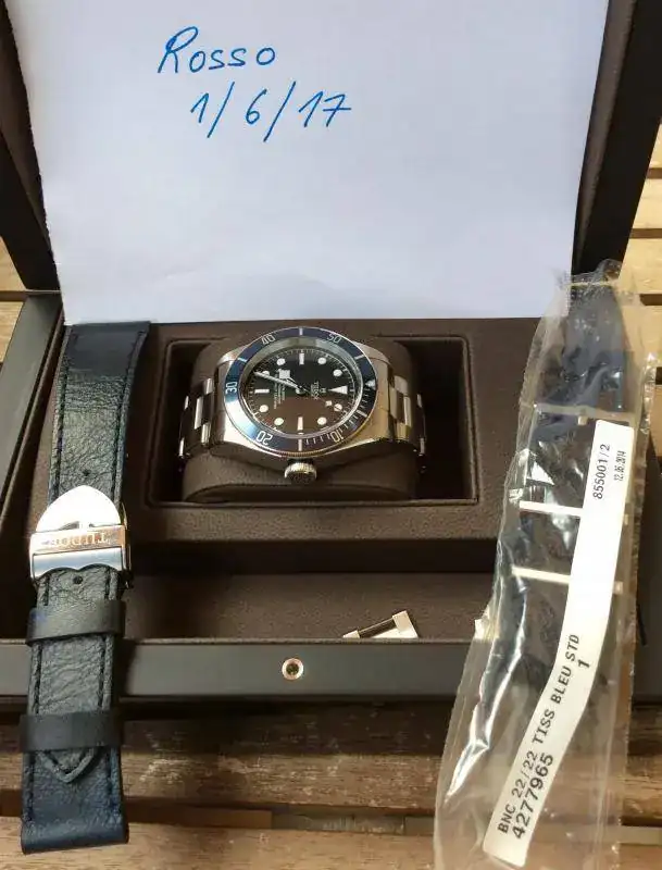 Hola a todos, vendo Tudor Black Bay Manufactura de bisel azul, se acompaña tarjeta de garantía, manuales, cajas, etc... brazalete metálico, nato original y correa de piel original azul envejecida con deployante original (que es un pico), una dotación muy completa para disfrutar esa pieza.