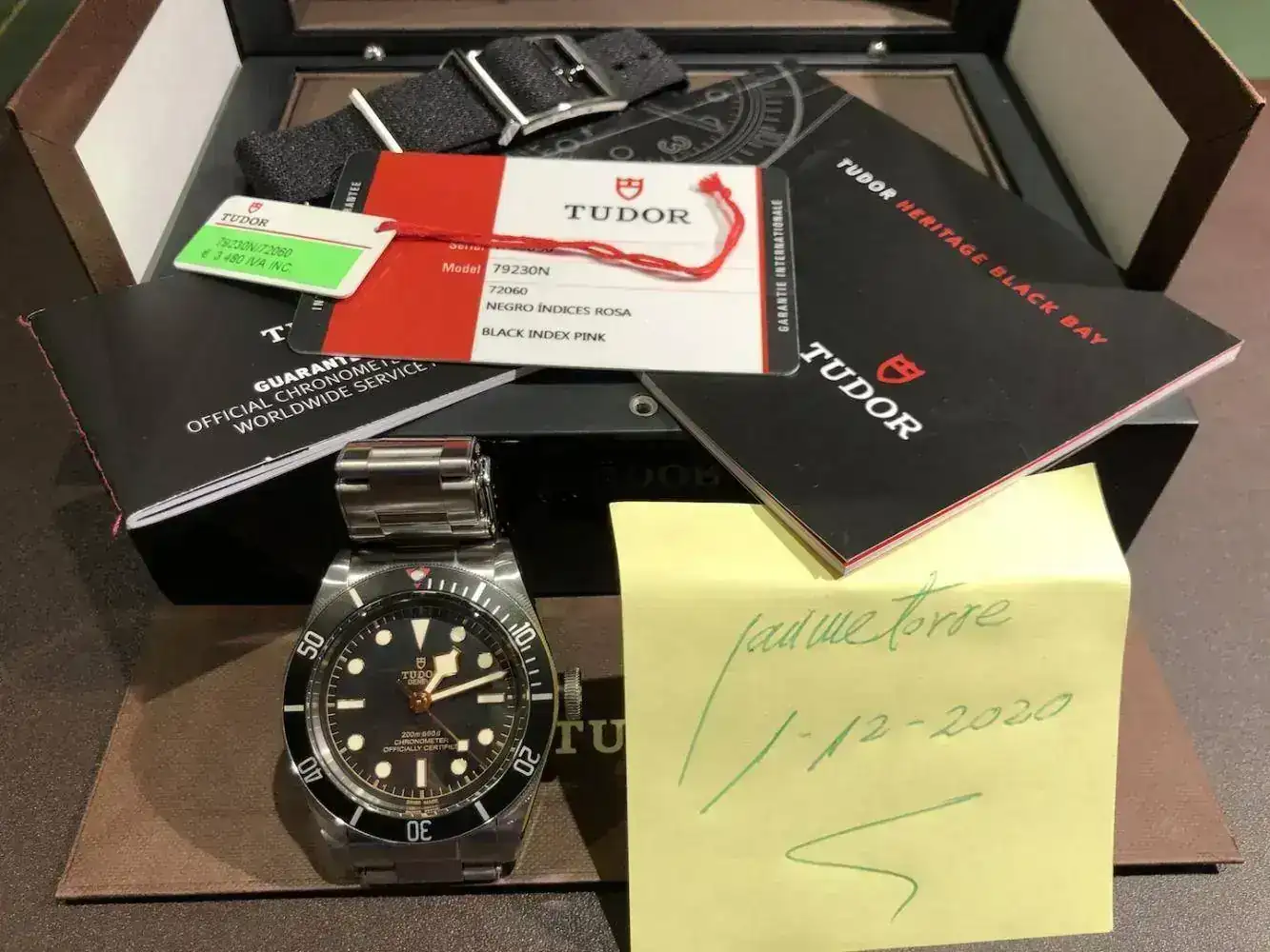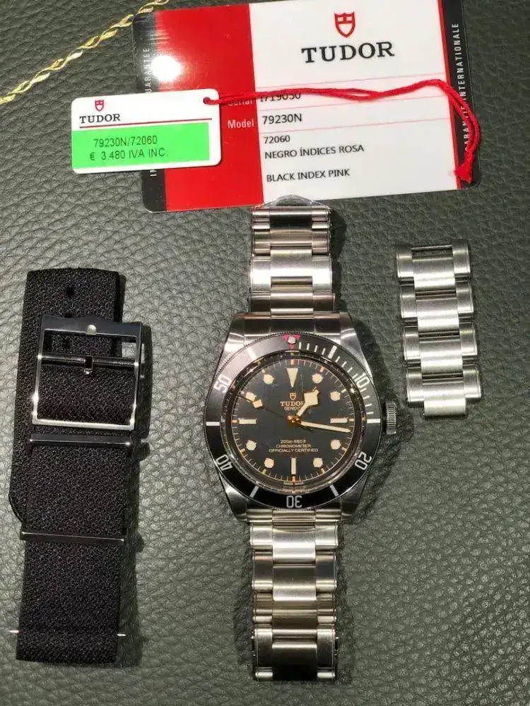 Buenos dias compañeros del foro:Pongo para la venda mi Tudor Black Bay de 41MM. Se encuentra en perfecto estado, nacional y dotación completa. Las fotos he intentado que se vean los defectos del mismo para que veas el estado en que se encuentra, en realidad, únicamente hay los pelillos por su uso que ha sido mínimo. Pero como tiene que entrar una pieza otra debe salir, así que he de decido desprenderme de él. El precio que le he puesto es mas barato de la red, para que salga rápido y alguien lo pueda disfrutar y darse el capricho antes de Navidad.No estoy interesado en cambios dado que el precio va destinado a otro reloj en camino. Y ahora las fotos de rigor. Saludos y gracias al foro por el espacio que nos brinda.[TABLE="align: left"]