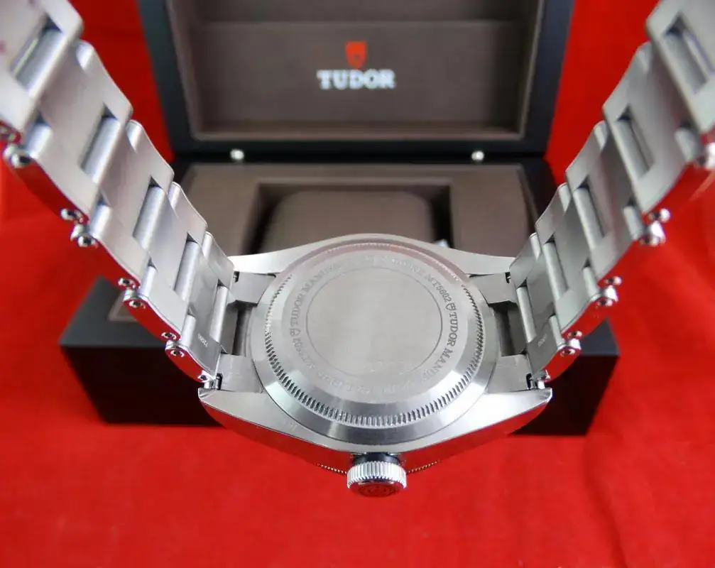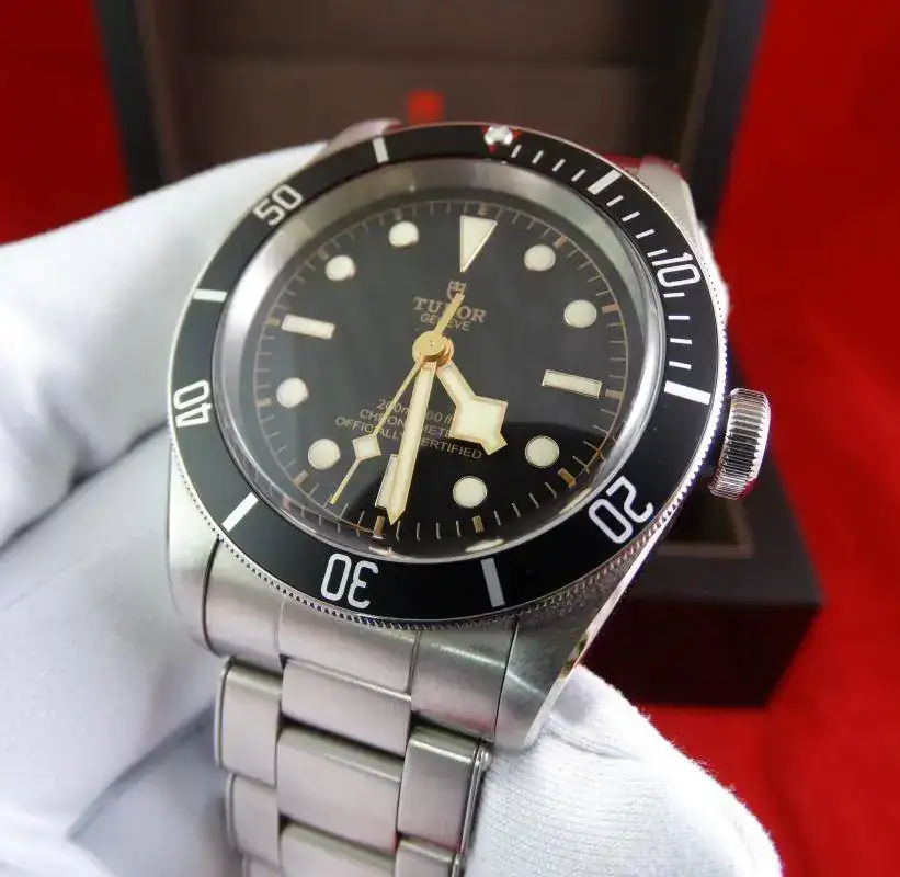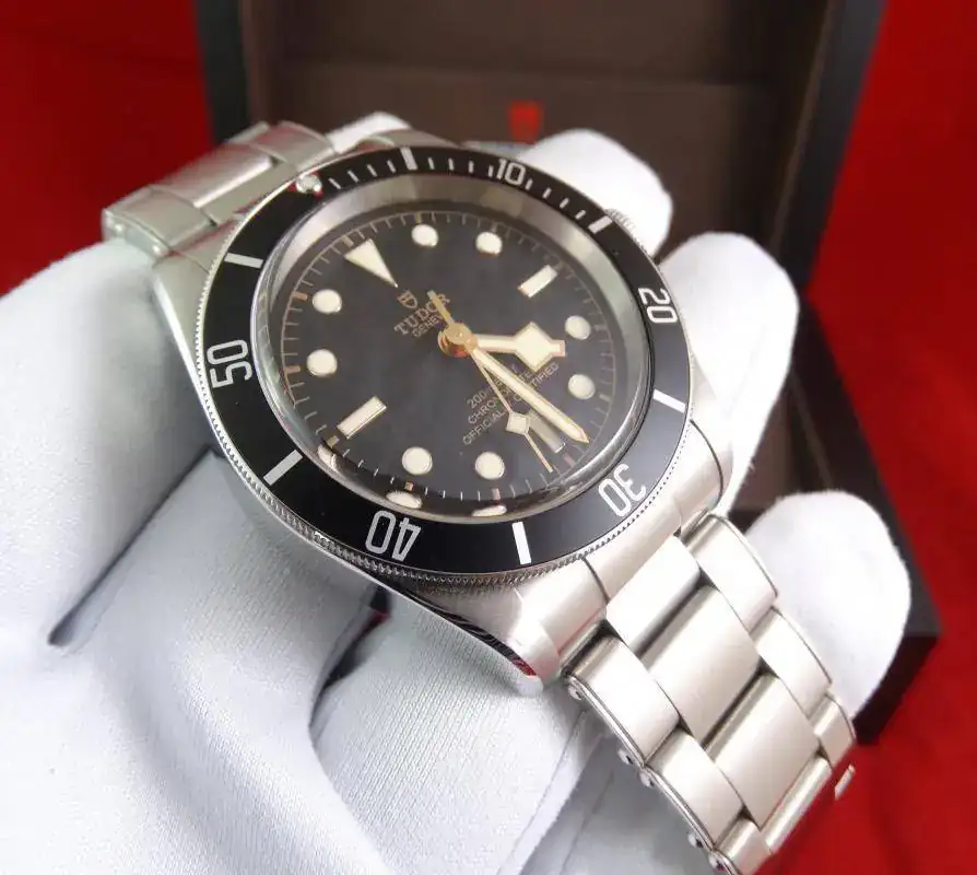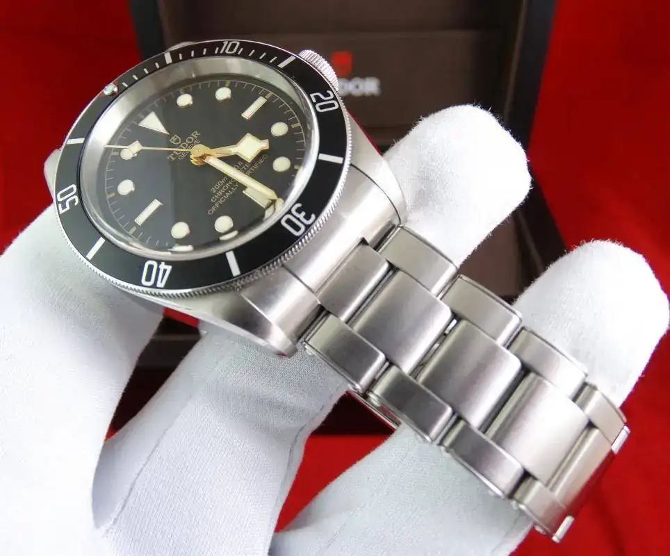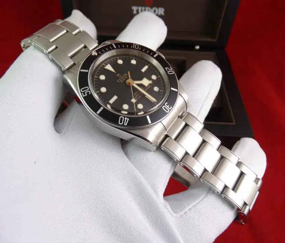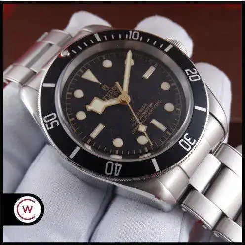 Proponemos hoy un reloj de corte clásico, diver sobrio, el TUDOR Black Bay, en su versión de bisel negro, y que incluye el calibre manufactura. El reloj es contundente en la muñeca, pero a la vez cómodo de llevar. Adereza la sobriedad del negro de esfera y dial con toques en cobre en índices, inscripción y agujas, así como el triangulito rojo enmarcando la perla del bisel. El brazalete imita unos remaches, lo que acentúa más su carácter vintage. A todos se nos viene a la cabeza que es un "Submariner", pero con un caracter mayor, con personalidad propia, aunque igual de versatil.