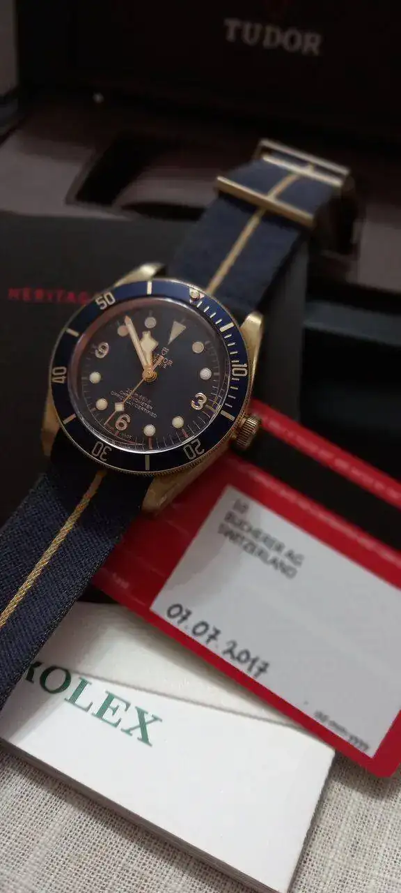 Saco una pieza súper exclusiva y poco vista por aquí. Se trata de un Black Bay serie especial Bucherer. El reloj es de 2017 pero NO SE HA USADO. El bronce ha empezado a coger su pátina pero no ha salido a la calle.