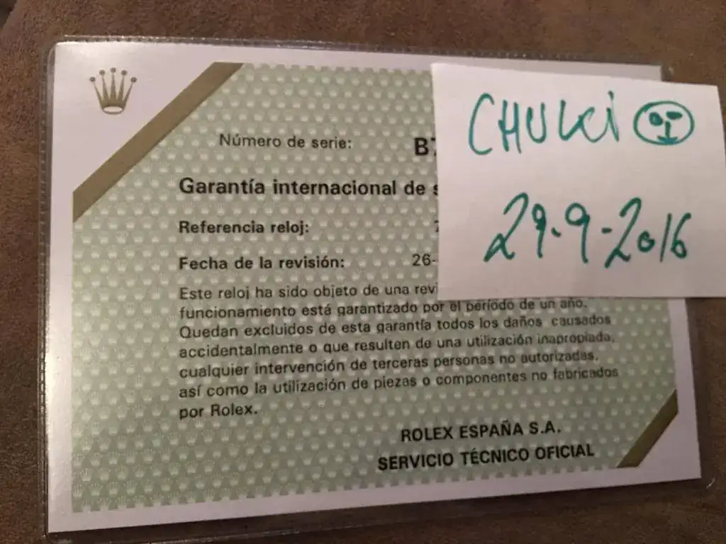 ¿Documentación? s/n No perdida, pero certificado de revisión rolex original