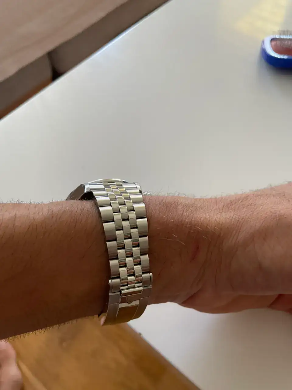 Al menos el eslabón de la caja de ese jubilee es "como dios manda" y no la aberración de medio eslabón que usa Rolex.El color no me gusta nada, pero lo de que lleve el nuevo brazalete es bastante novedad.