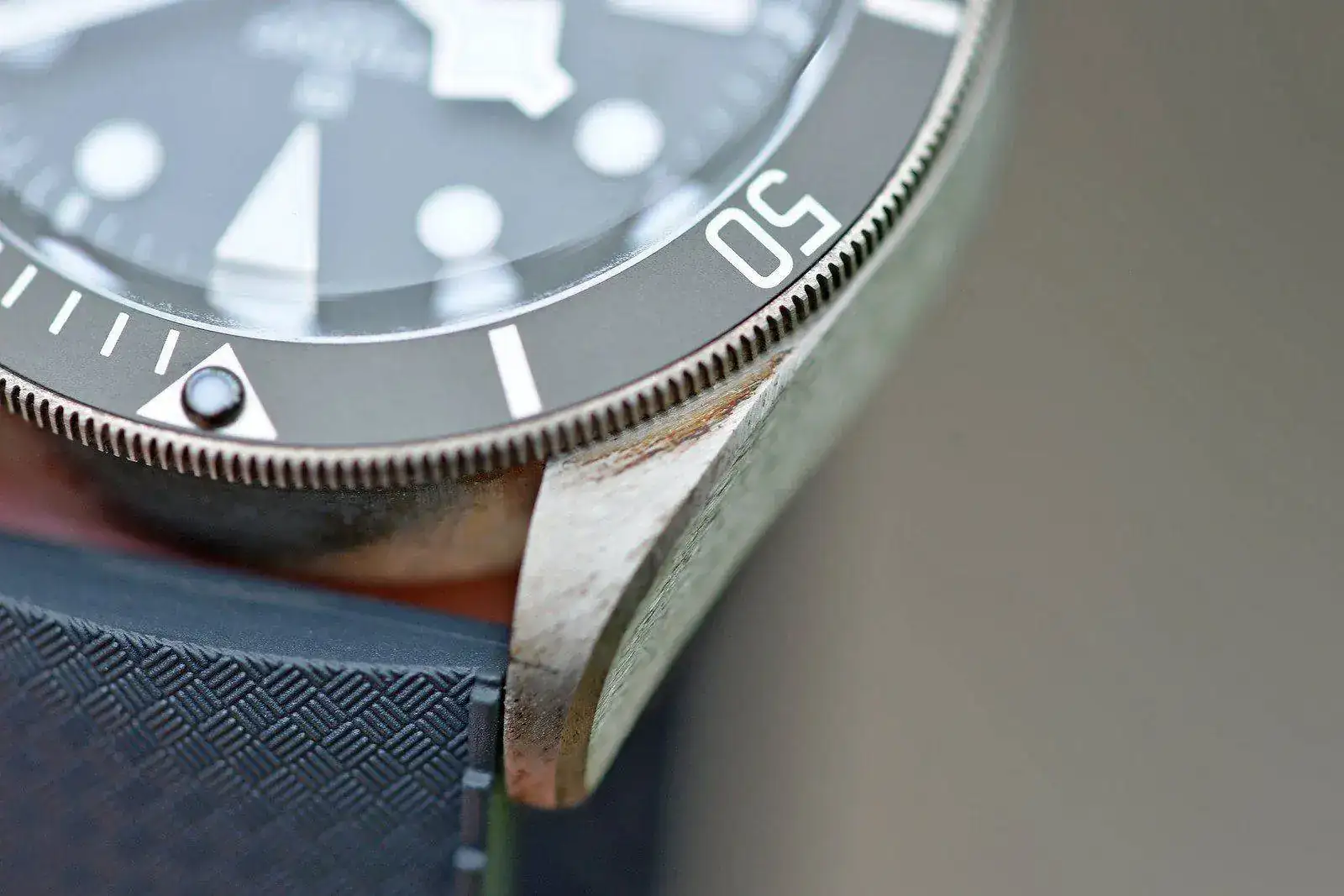 Con el Tudor hago lo mismo, con una gamuza le doy cuando quiero usarlo, y le saco un brillo que no tiene cuando está en la caja, pero nunca le vo esas manchas de roña que se muestran, y os aseguro que me fijo en mis relojes.