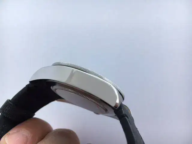 El estado del reloj es bueno, a pesar de eso, dado que va pulido a espejo, se ven algunos pelillos. También hay alguna señal de cambio de correa. En las fotos no he podido plasmarlo bien.