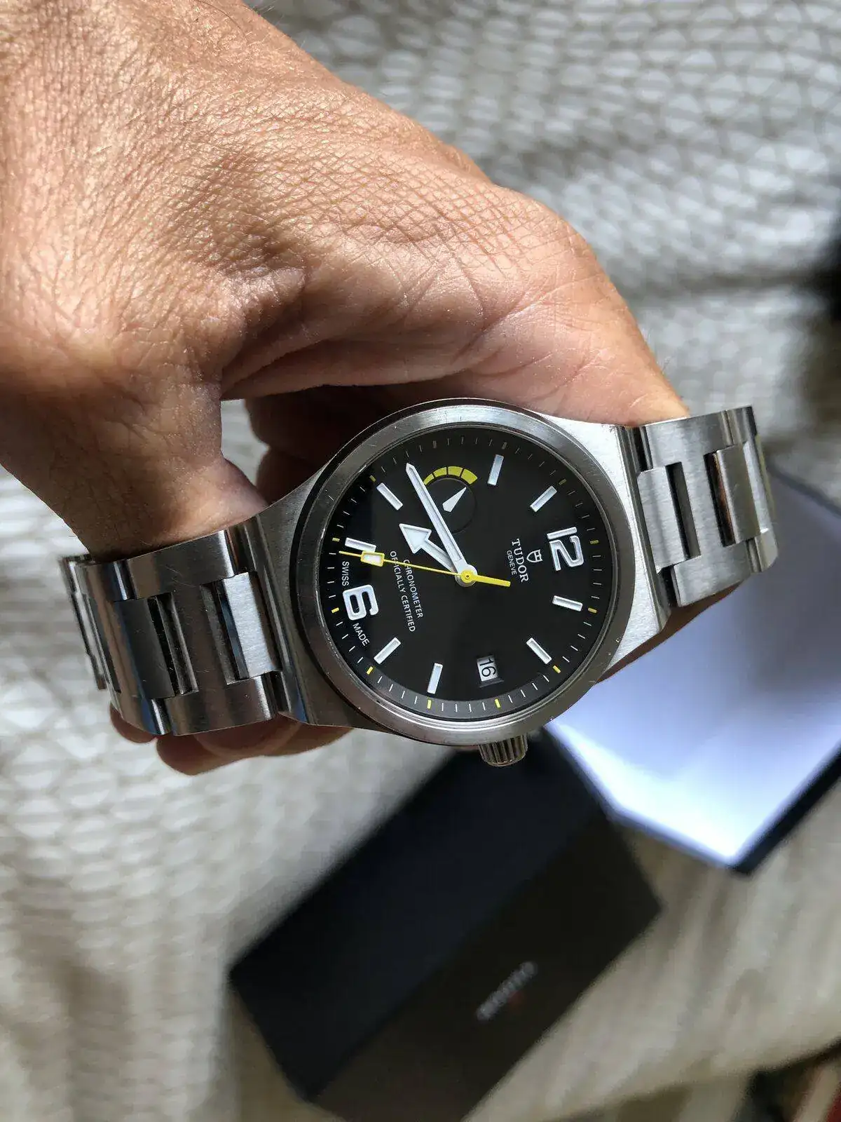 Pongo a la venta este Tudor North Flag, para dar entrada a otra pieza. El reloj lo compré a un forero, y de marcha va perfecto. Tiene el set completo, y salvo algunas rayas esta perfecto.