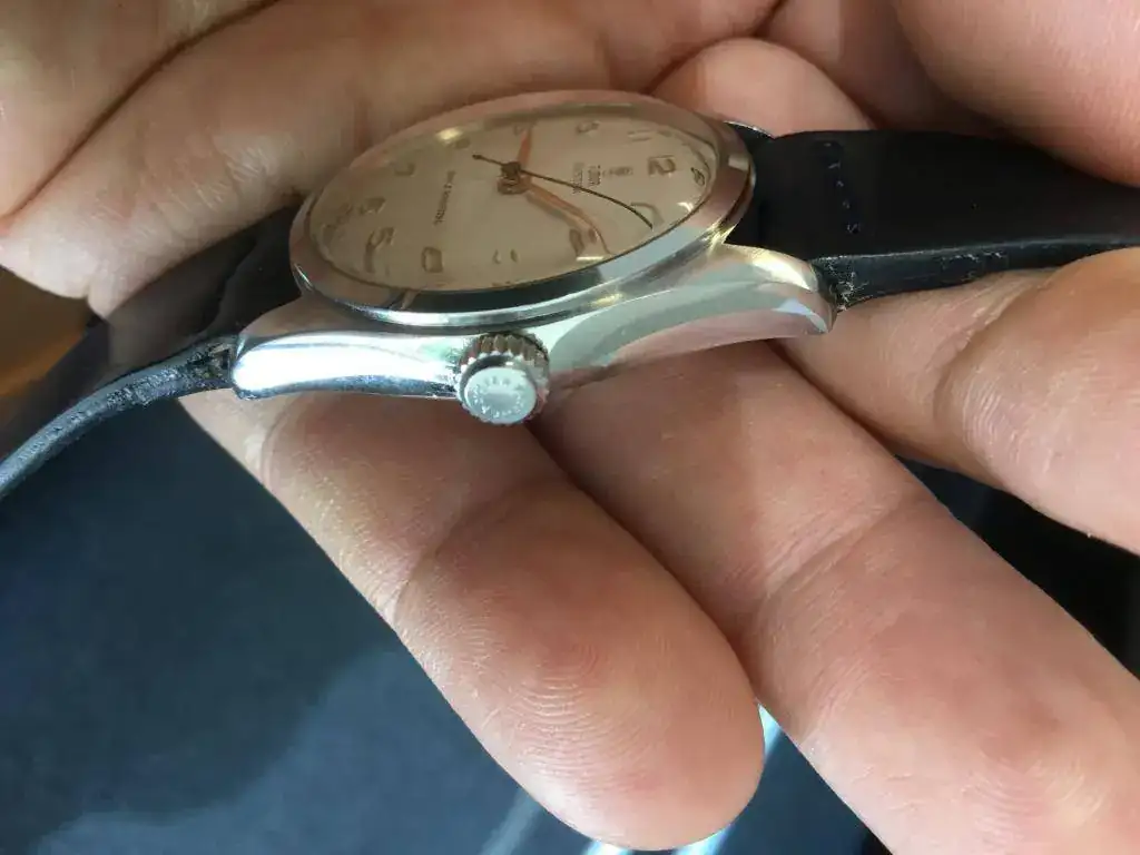 El calibre es una gozada al manipular, suave como la mantequilla. La corona cierra perfectamente. Por cierto la corona es la original y rara Patent Oyster.