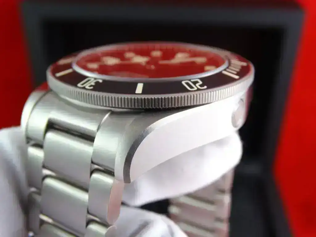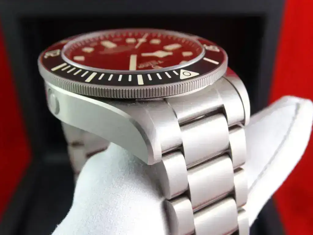 Hoy proponemos un Diver que no deja indiferente a nadie, el salto cualitativo del Pelagos respecto a los hermanos pequeños de la familia Tudor, es notable. El acabado de la esfera es sencillamente espectacular. Bisel, caja de titanio, válvula de helio y un cierre con un macroajuste que destaca en el mercado. En este caso el modelo LHD, cuya corona se sitúa a las 9, índices tostados y grafía en color rojo. Una edición numera en la trasera.