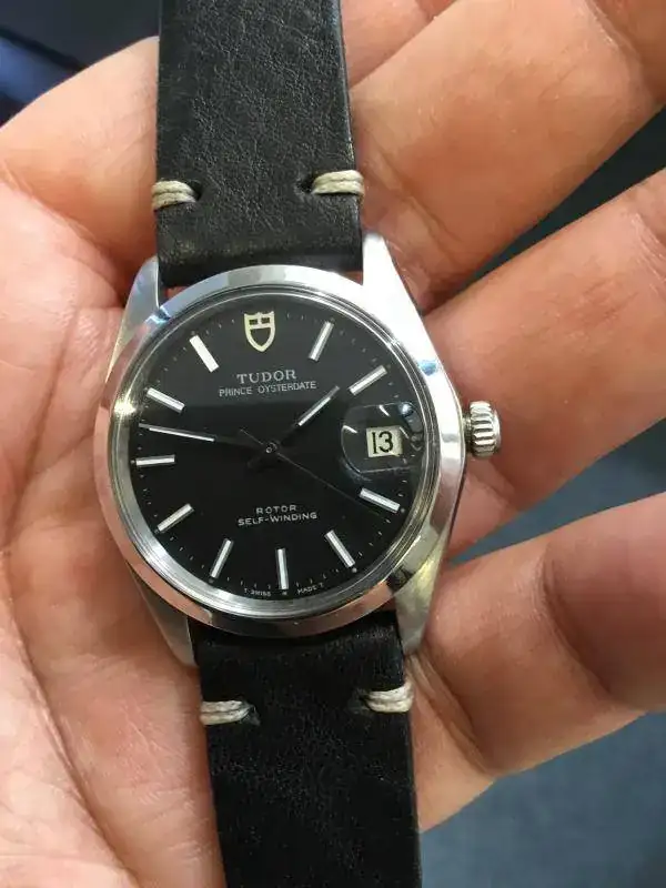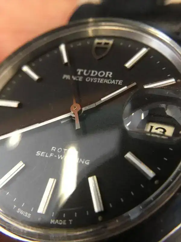 Pongo a la venta este Tudor Prince Oysterdate Ref. 9050 de aproximadamente 1979-1980 (serie 927xxx). El reloj tiene la rara esfera negra con letras color plata, un dial bastante menos común que el típico blanco con letras negras.