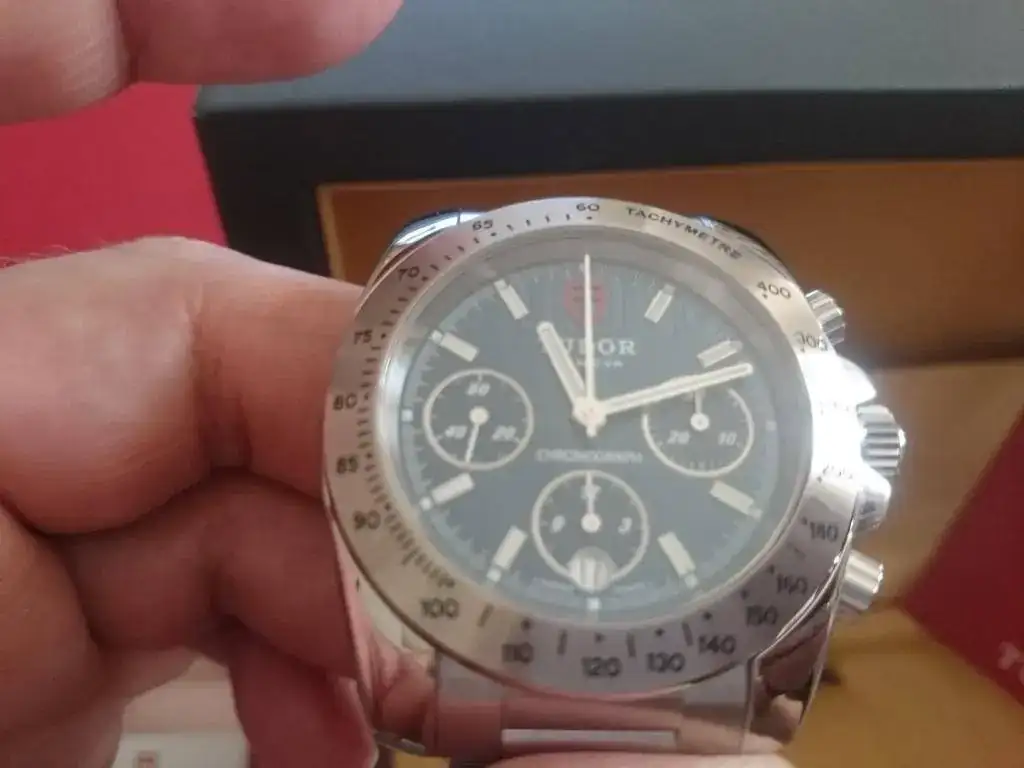 Debido a la caza de otra pieza mayor , me veo obligado a sacar esta preciosidad ya descatalogado, en muy muy buen estado, nada de pelillos ni roces ni marcas tiene muy pocas puestas. El color azul de la esfera según le da la luz cambia de una manera espectacular.
