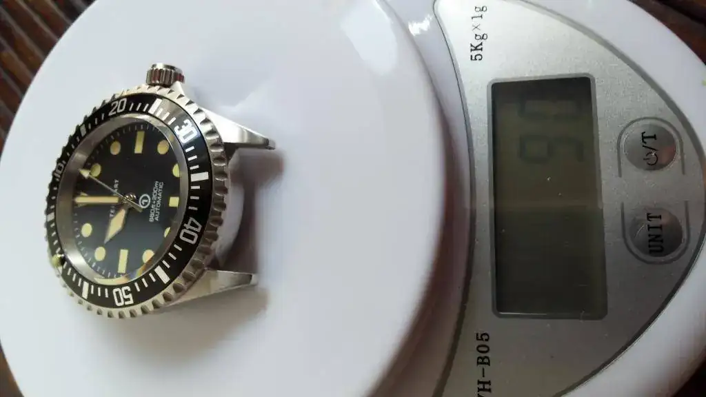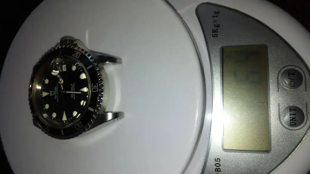 Una vez liberados de sus armis, volvemos a pasar por la báscula ambos relojes (90grs el Steinhart y 64 grs el Tudor)