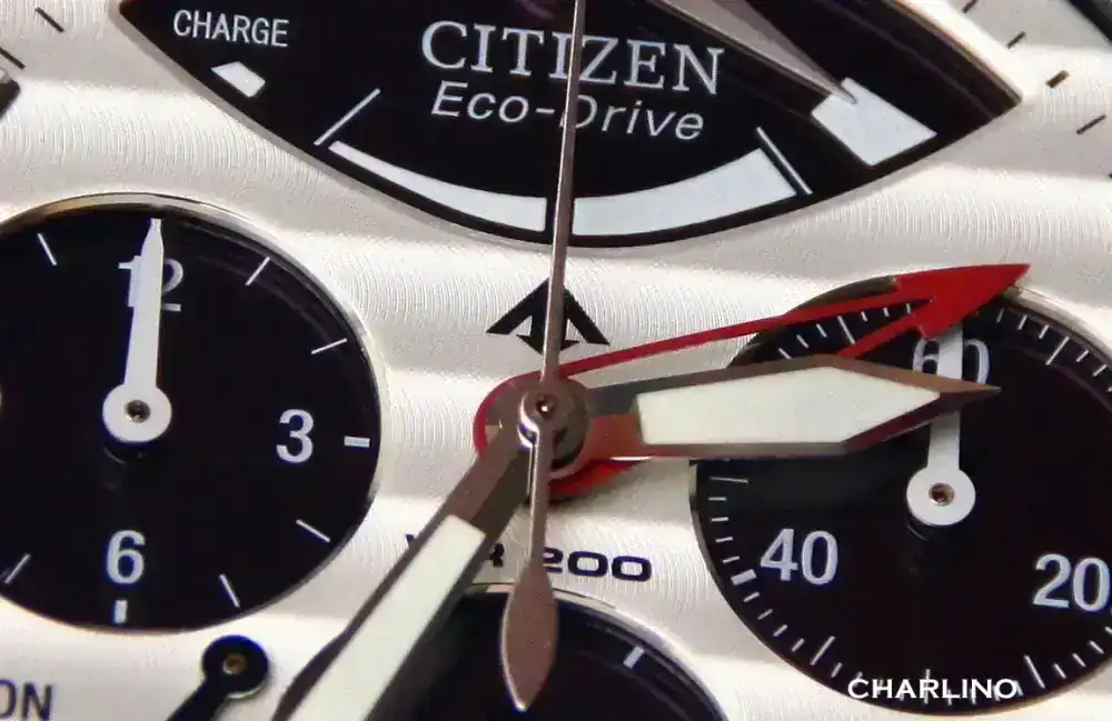 El otro del que tengo algunas fotos de cerca es mi Eco-Drive favorito, el Citizen Calibre 2100 panda. Una de las cosas que siempre me han gustado de este reloj es la decoración côtes de Genève de su esfera, y vista de cerca se puede apreciar la textura de esta decoración, que puesto en la muñeca se ve preciosa.