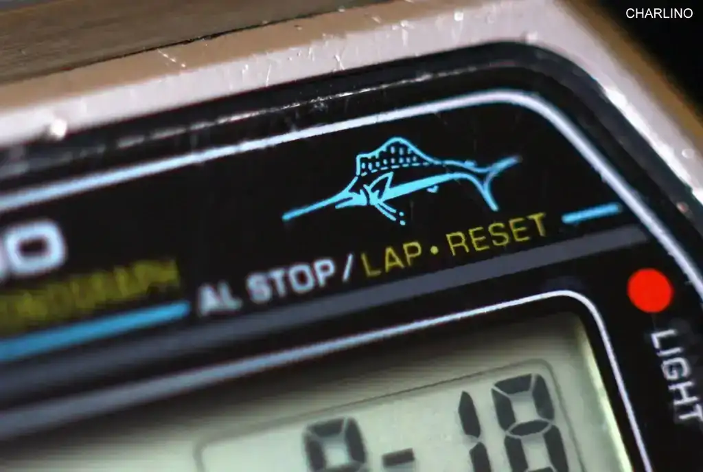 Los digitales también tienen su gracia vistos de cerca, con esos segmentos que parece que flotan. Estos son el gran Casio Marlin H-101 de 1980 y su hermano Marlin W-36 del 82.