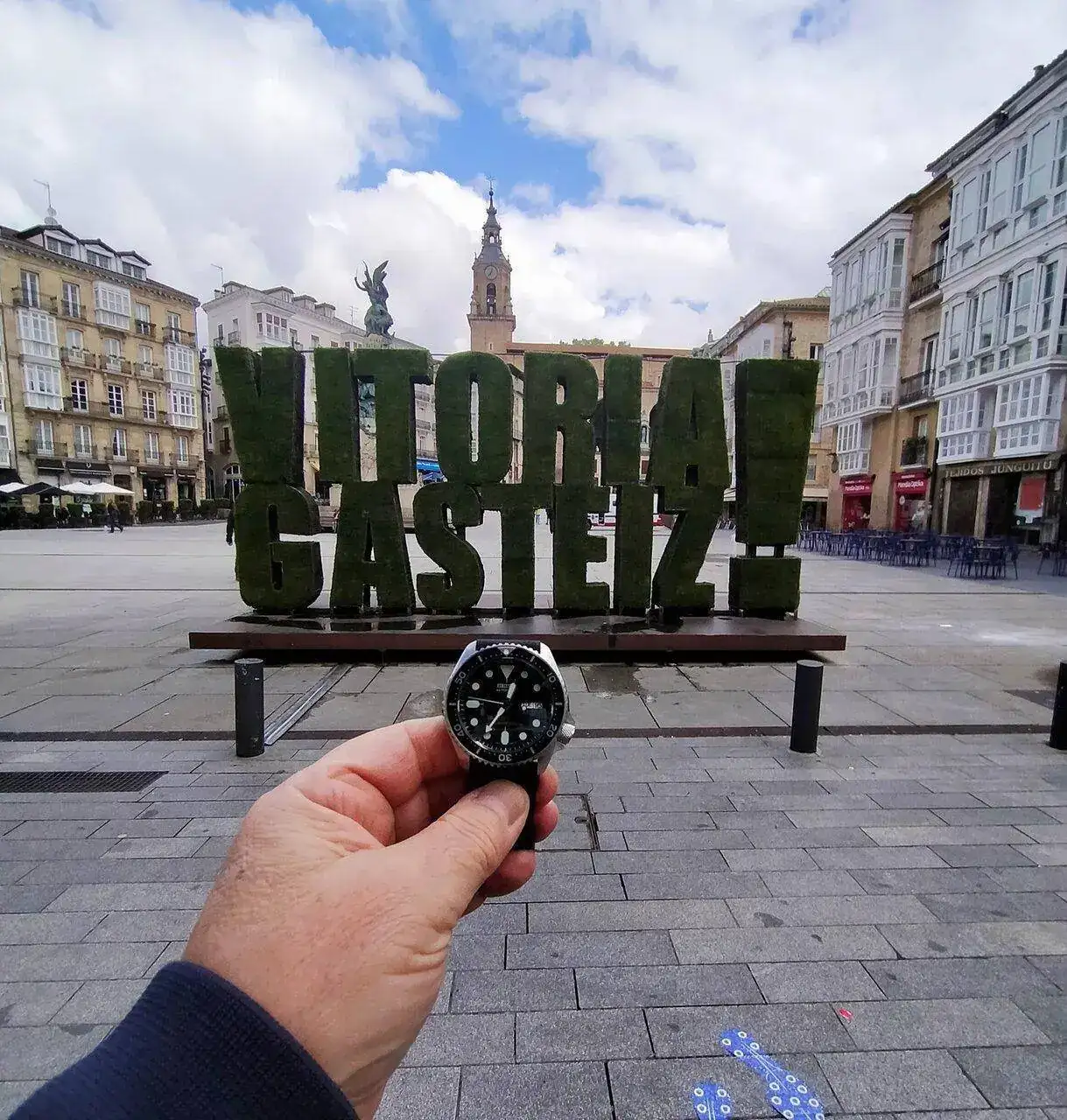 Cada día me gusta más Vitoria. El domingo estuve tomando un cafecito en la cafetería de esa esquina.A ver a quién le suena.....