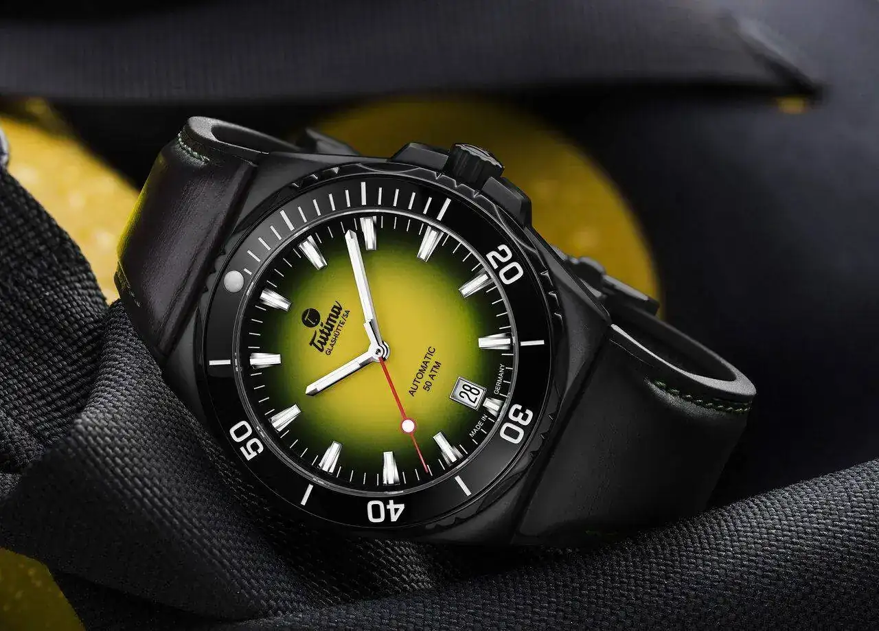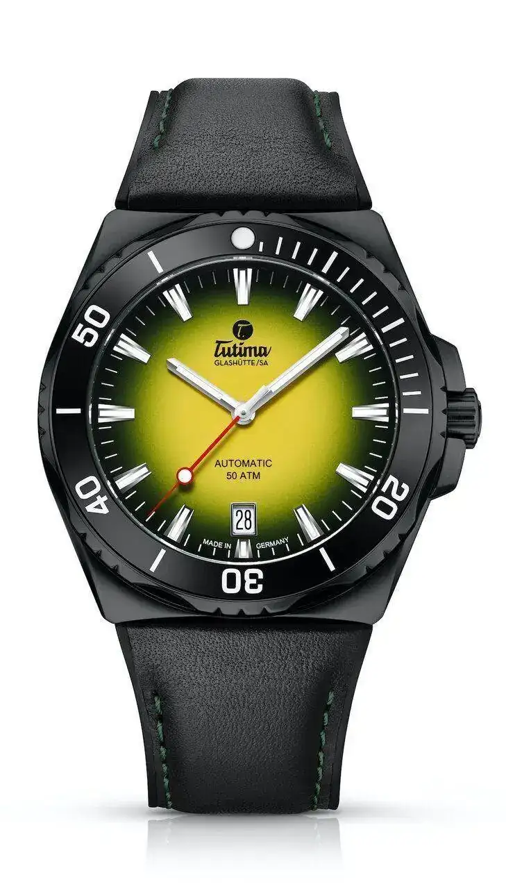movimiento automático suizo Tutima calibre 330 con 25 rubíes, 28.800 vph y una reserva de marcha de 38 horas. Sello de oro en el rotor. Las funciones son: horas, minutos, segundos centrales y fecha.