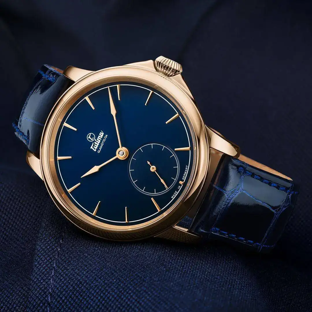 Precioso reloj de Tutima , caja en oro rosa de 18 quilates, mide 43 mm x 9,7 mm,cristal de zafiro recubierto de AR abovedado, una pantalla de zafiro y es resistente al agua hasta 30 metros.