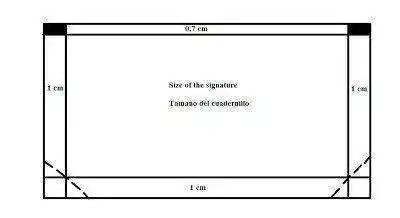 5) El último margen, el de 0'7 cm, lo pegaremos al primer cuadernillo (o al último, dependiendo de si hacemos la cubierta o la contracubierta):
