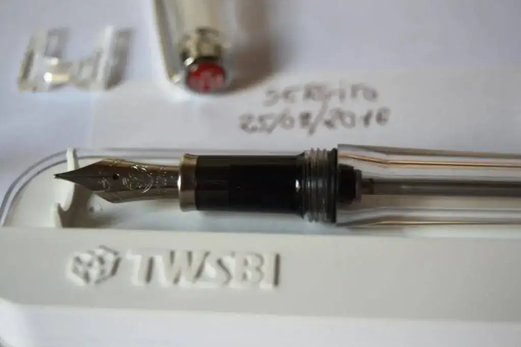Pongo esta Vac700 que compré antes de verano y que sólo he usado un par de veces, mi intención es cambiarla por la Vac mini porque me encanta el desempeño y sistema de carga de la Vac700, pero lo que no me gusta es que el M se me hace demasiado grueso y que es una pluma demasiado grande para mi, por eso precisamente pretendo cambiarla por la Vacmini a ser posible en F, aunque naturalmente estoy abierto a otras posibilidades, preferentemente facetadas, que es la obsesión que tengo ahora.