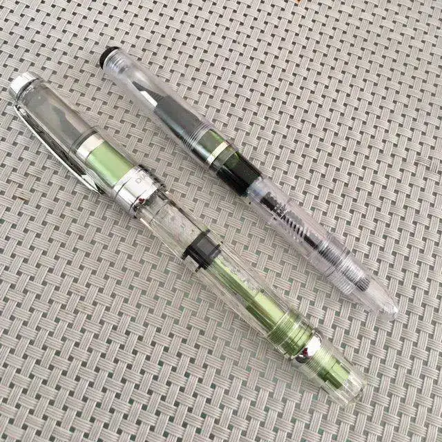 Pues la Twsbi 580 AL lleva el pistón en verde y queda muy bonito, pero eso ya es personal. Y la Dollar, que está tirada de precio, lleva todo en color transparente.