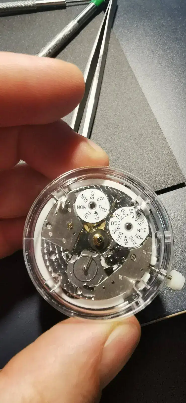 Las nuevas L.687 descienden de un calibre Omega, que a su vez desciende del 7751 de toda la vida pero con mejoras significativas. Rueda de pilares y espiral de silicio especialmente, pero son imposibles de encontrar y ni me he plantée preguntar directamente a Longines si me vendían una o pedir precio a través de un relojero. Me hubiera gustado tener rueda de pilares, pero que se le va a hacer.