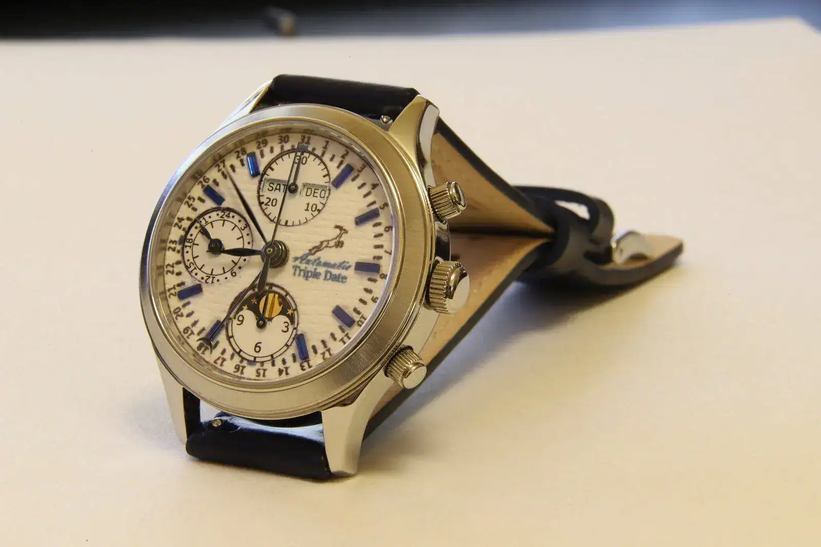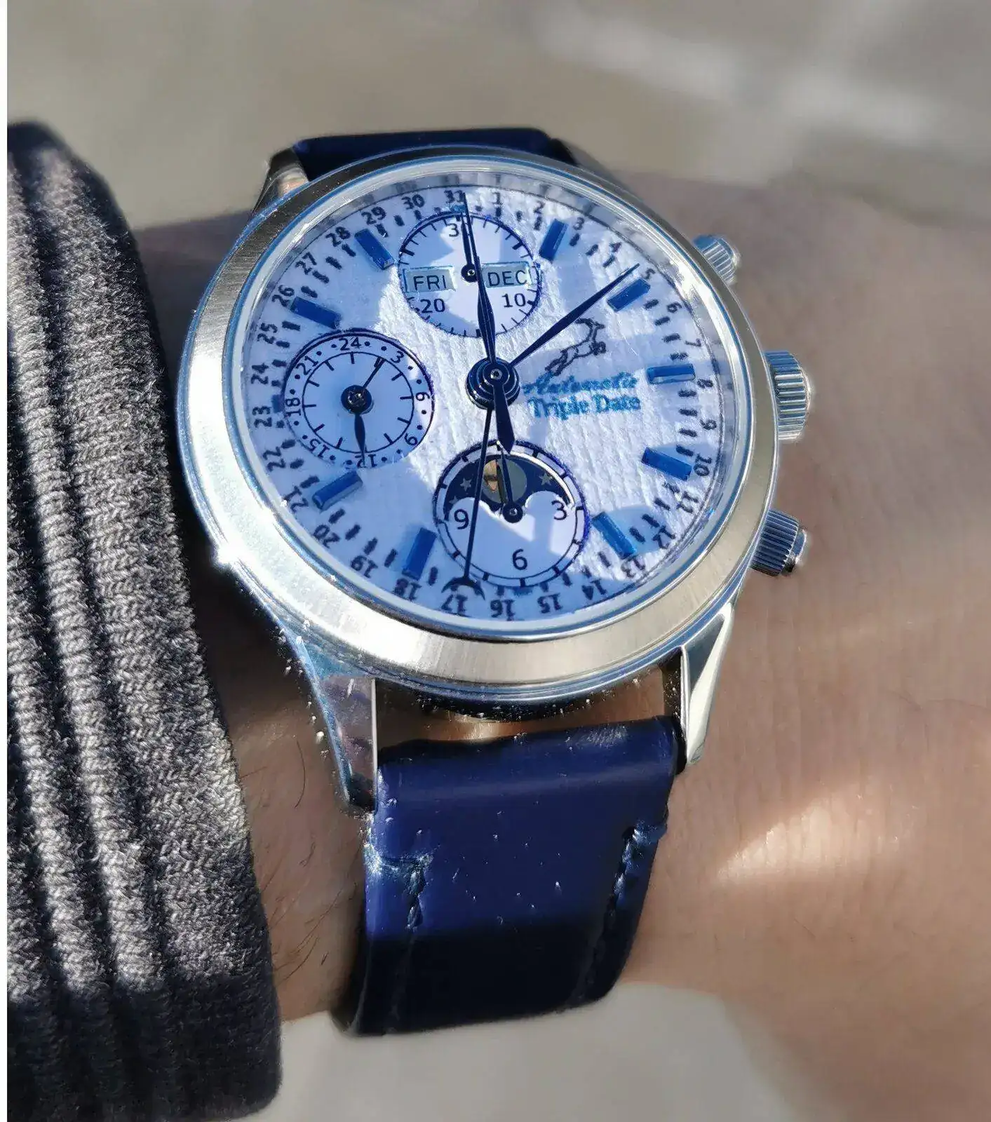 La idea de montar algo con una Valjoux 7751 me ronda la cabeza desde que empecé a investigar para montar mis propios relojes. Vi en Ebay una tienda suiza que vendía los movimientos, diales y cajas, pero los movimientos eran demasiado caros, las cajas demasiado grandes, y los diales demasiado sosos. Así que el proyecto quedó en pausa, pero dando vueltas en mi cabeza, mientras montaba otras cosas... Un par de divers con NH35, un reloj fino y sencillo que me encanta con una Soprod A10-2... Hasta que de repente un día me topé con un anuncio en Ebay que vendía una máquina Longines L678-2, nueva en su paquete sellado, a un precio más que razonable y no pude resistir...