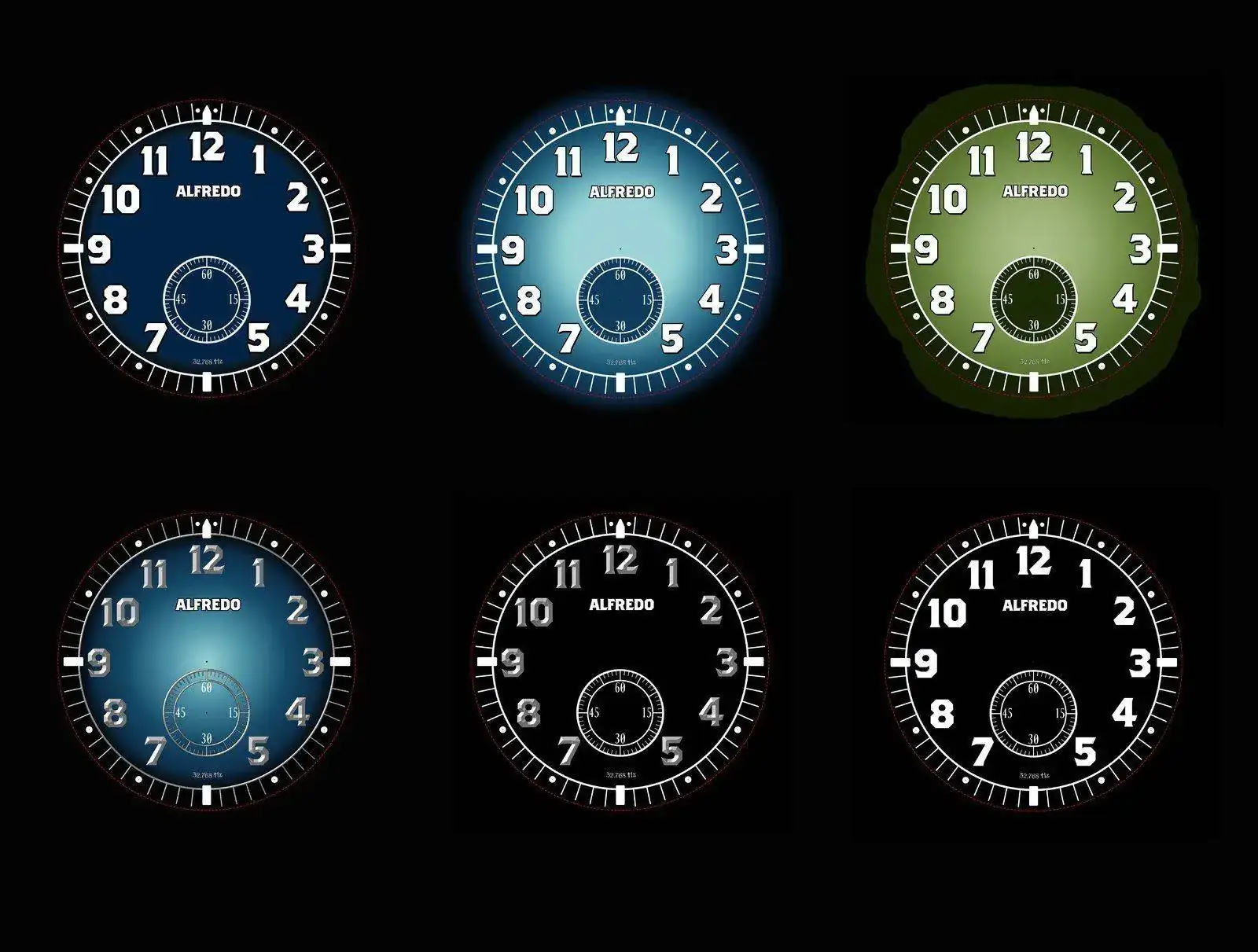 Dial arriba +0s/d, dial abajo +2, 12 arriba +0, 12 abajo +2, corona arriba +0, corona abajo +3