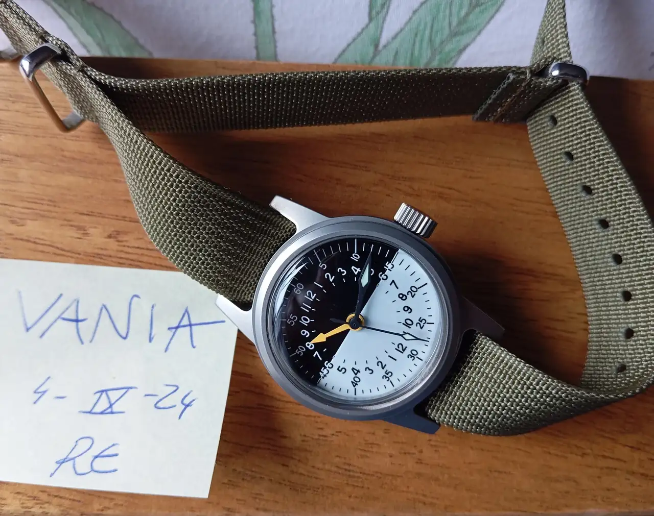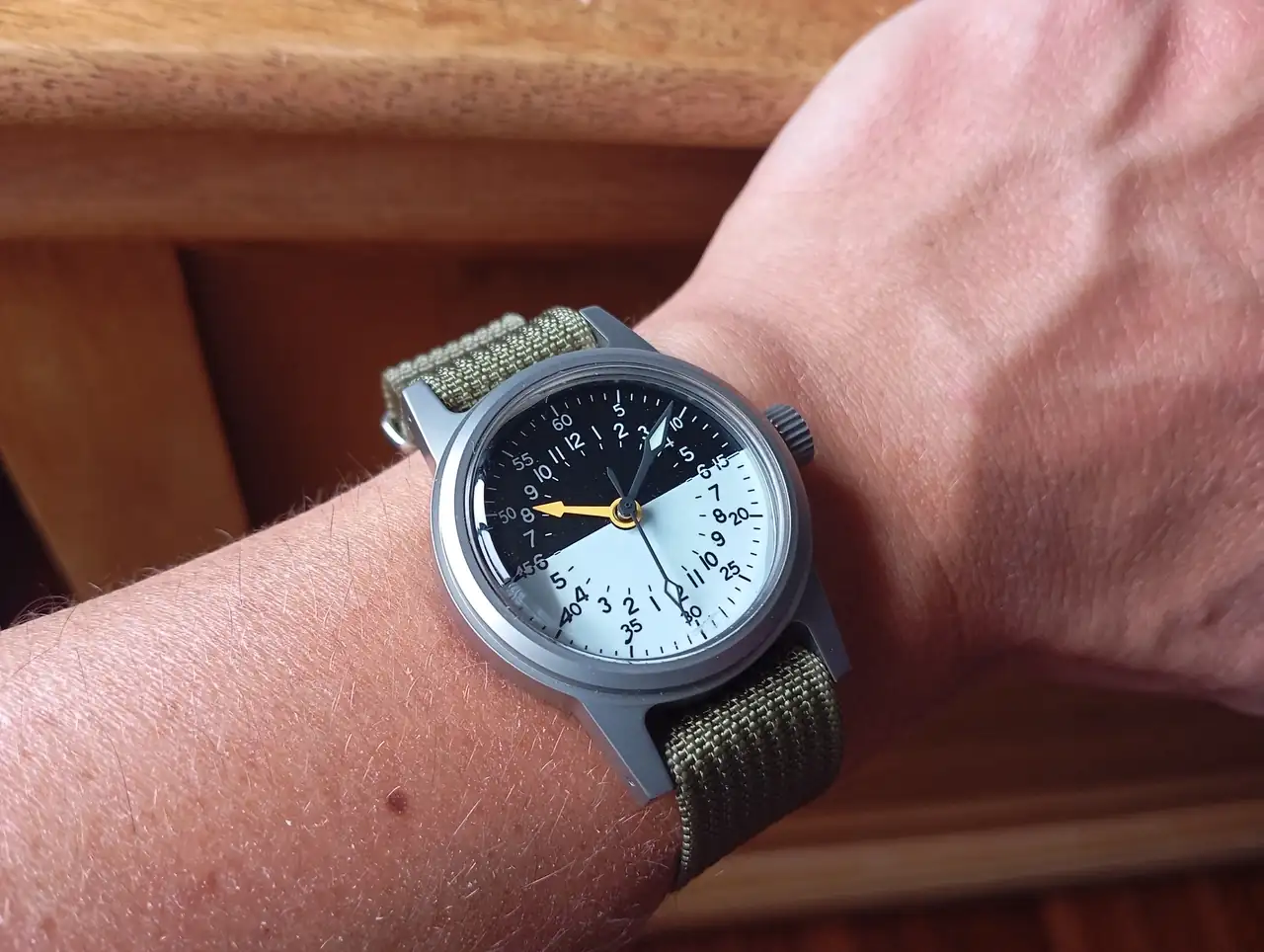 El reloj está genial y me parece muy bonito. He utilizado un NH34, que es GMT, y dejándole solo la aguja amarilla del GMT como si fuera la de la hora marca las 24 horas del día. Funciona perfectamente.