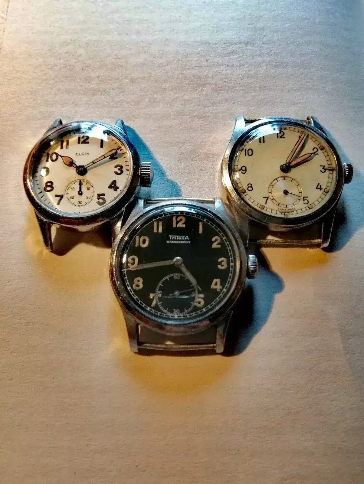 Antes de nada, me gustaría apuntar cierta consideración: debe tenerse muy en cuenta la vida que han llevado la mayoría de las piezas de dotación de las que se va a tratar, resulta casi inabarcable la cantidad de combinaciones posibles que de estos relojes pueden llegar a existir hoy día, ya no solo por la multitud de variaciones en origen que sufrieron durante su fabricación, referencias seriadas, cajas, agujas, calibres, coronas, diales repintados, restauración de luminiscencia, cristales, y un largo etcétera de posibilidades, sino también por las reparaciones a las que debieron ser sometidos durante las situaciones bélicas (muchos de ellos continuaron en servicio allende la SGM), con mayor o menor esmero, y por supuesto, las falsificaciones tan en auge en la actualidad. Así que determinar la originalidad de una pieza, requiere de observación paciente y continua, y por qué no, también aceptar, ligeras variaciones siempre respetuosas con la estética e historia del reloj, fruto de reparaciones y mantenimientos que se hayan podido realizar a lo largo de sus 80 años de vida.