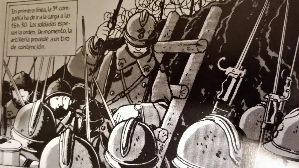 Esta imagen del gran dibujante frances Tardi, perteneciente a su maravillosa novela gráfica “la guerra de las trincheras.” Nos enseña dos aspectos novedosos en el mundo de la Horología, a saber;