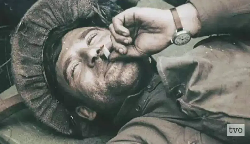 Y para finalizar ya y no aburriros más, una foto de un "Dough boy" descansando con su reloj en la muñeca. captura de pantalla del imprescindible documental Apocalipsis WWI