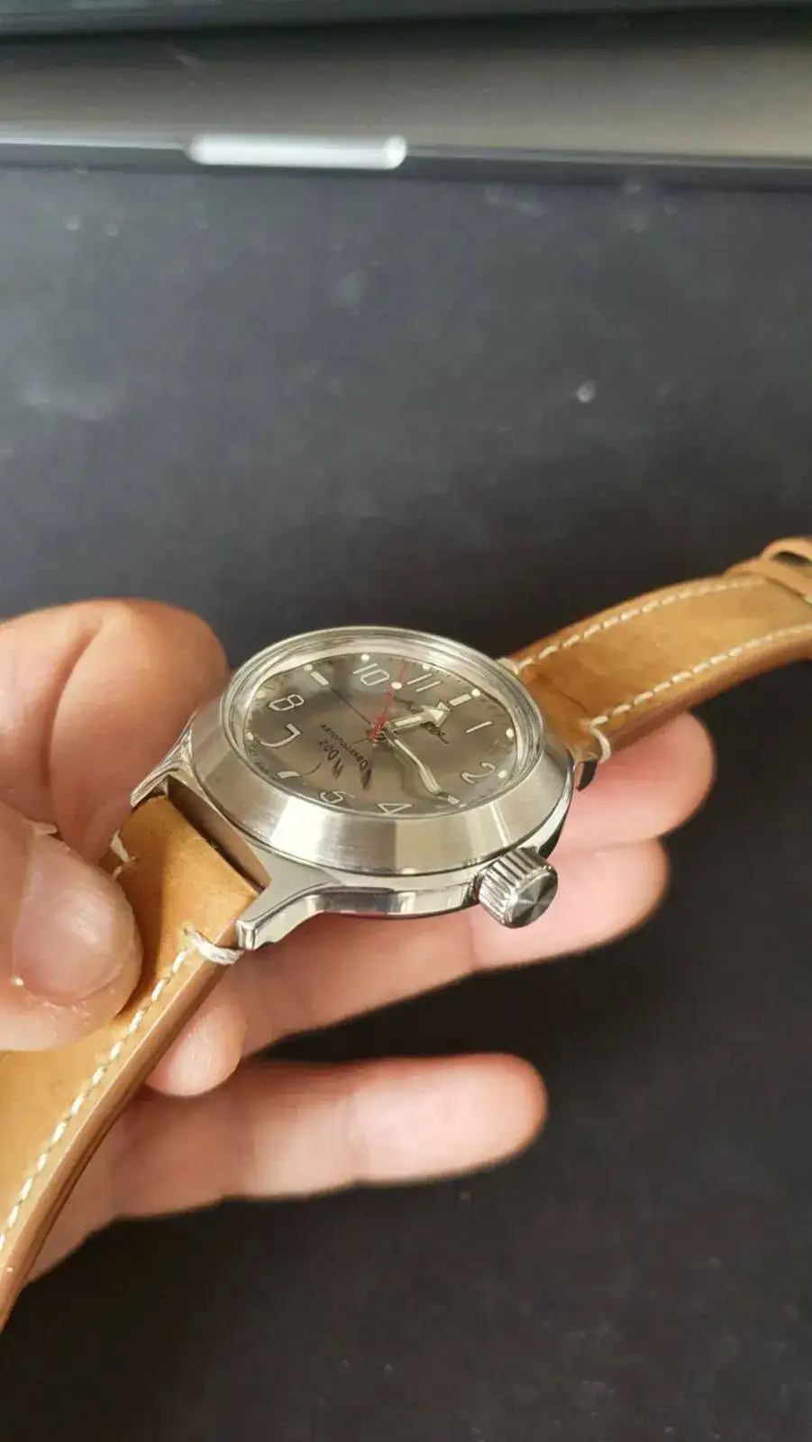 Tenía claro que la caja tenía que ser esa, la 420, porque es la más contenida alrededor del mecanismo. Y el dial de color champagne siempre me ha parecido el menos utilitario. No llega a la categoría lujosa, pero no parece la esfera de un rudo reloj subacuático. Por eso mismo, para mitigar el aspecto utilitario, opté por un bisel liso. Paradójicamente, aunque no tenga función cronográfica, la forma de ese bisel tiene fama de aumentar la capacidad de resistencia a la presión. Sigue sobrando, en cualquier caso, para lavarse las manos con mucha fruición.