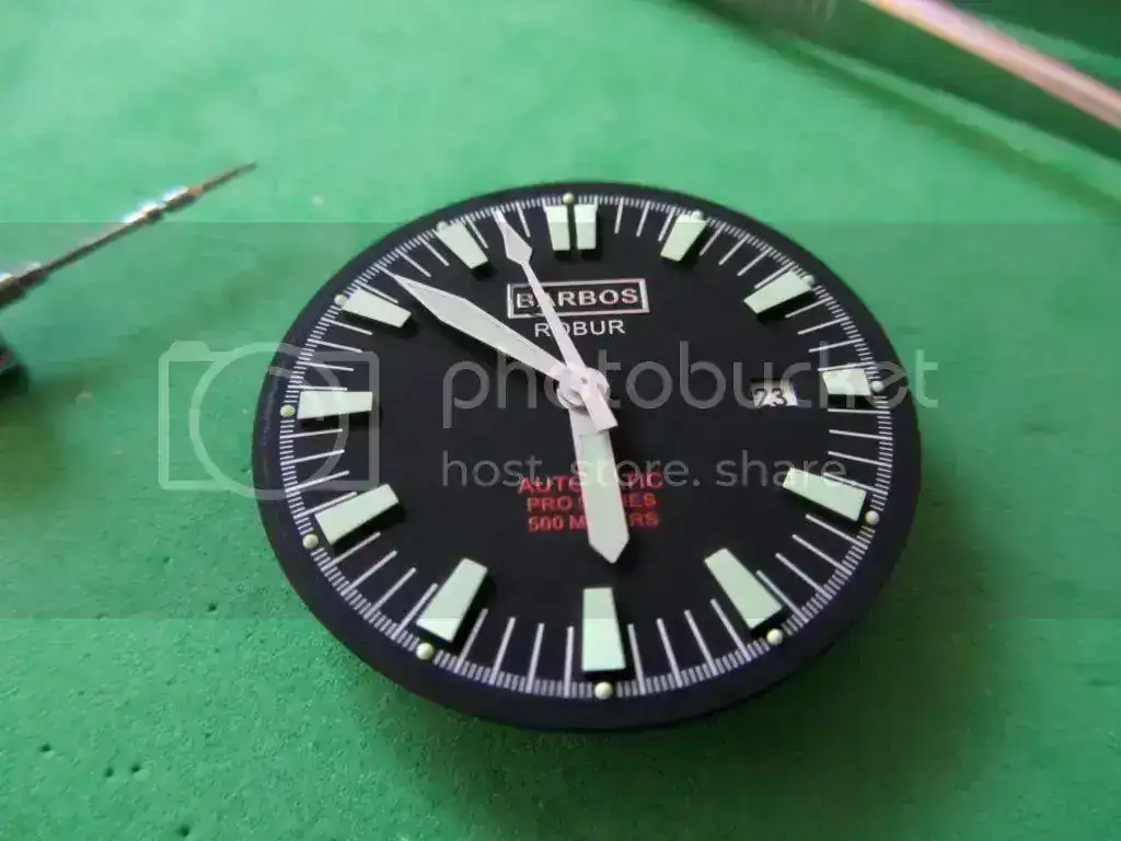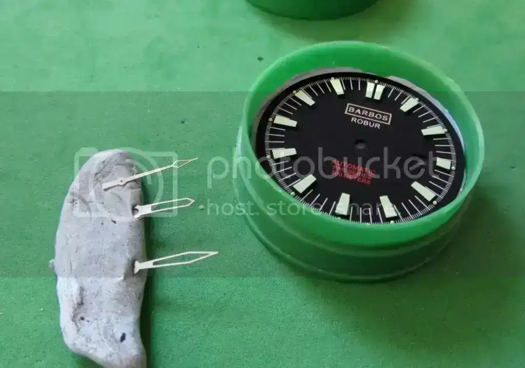 Preparados para el relume, con luminova C3 verdoso para semejar la que lleva el dial de origen pero no tan verde chino
