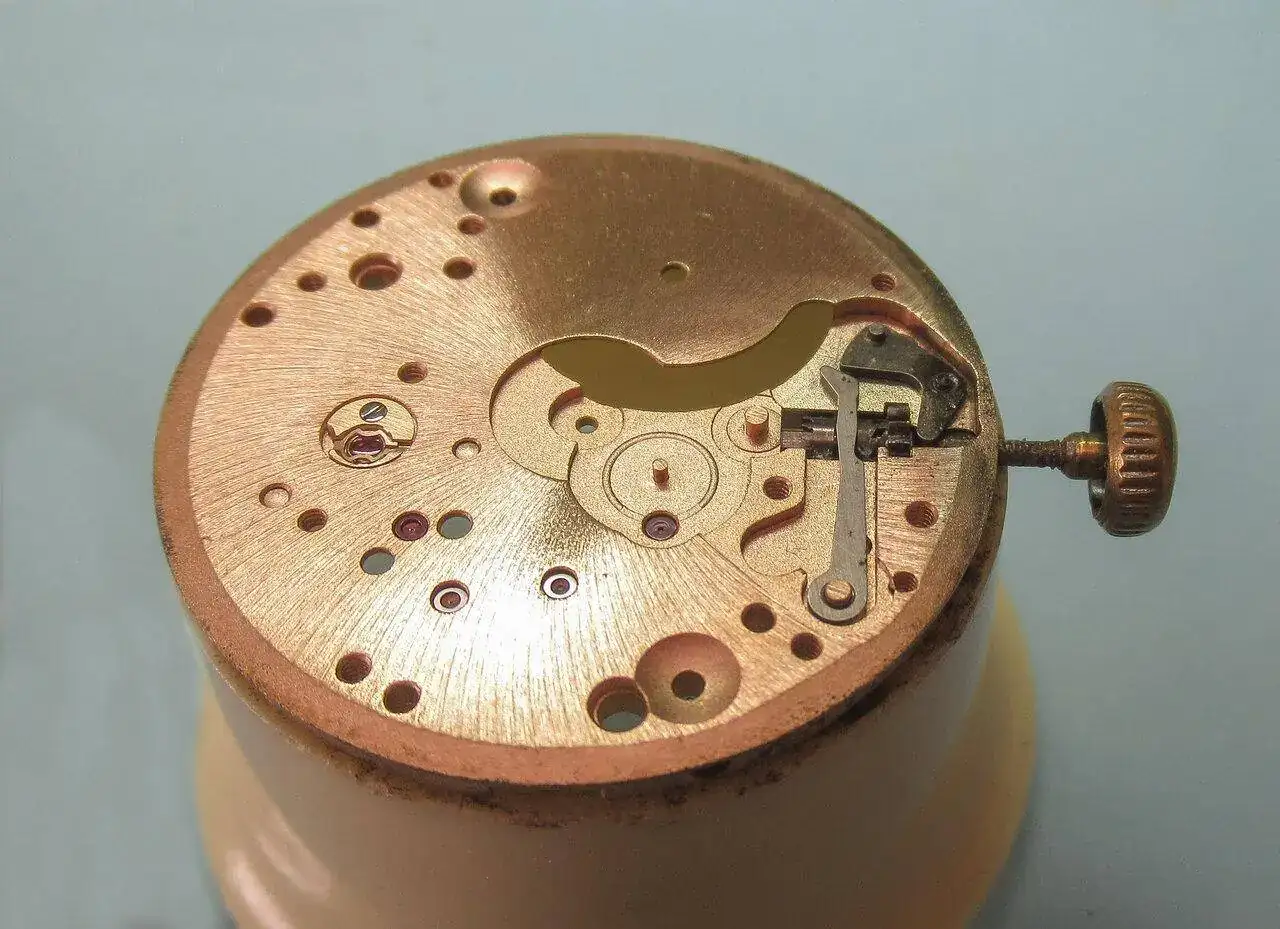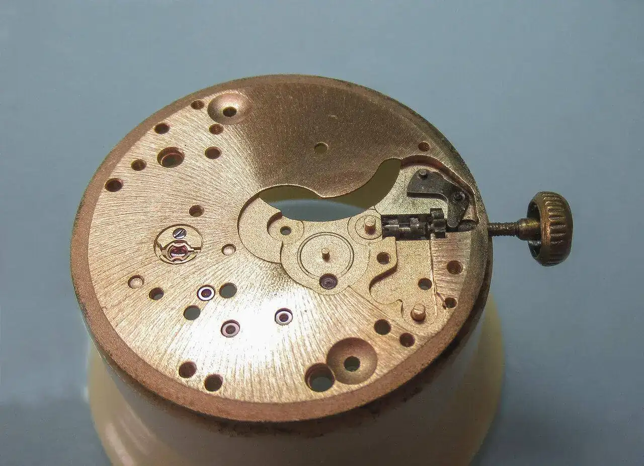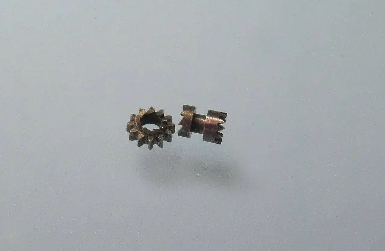 Junto a ellos ponemos el piñón de reenvío y la rueda de minutería que es la dorada