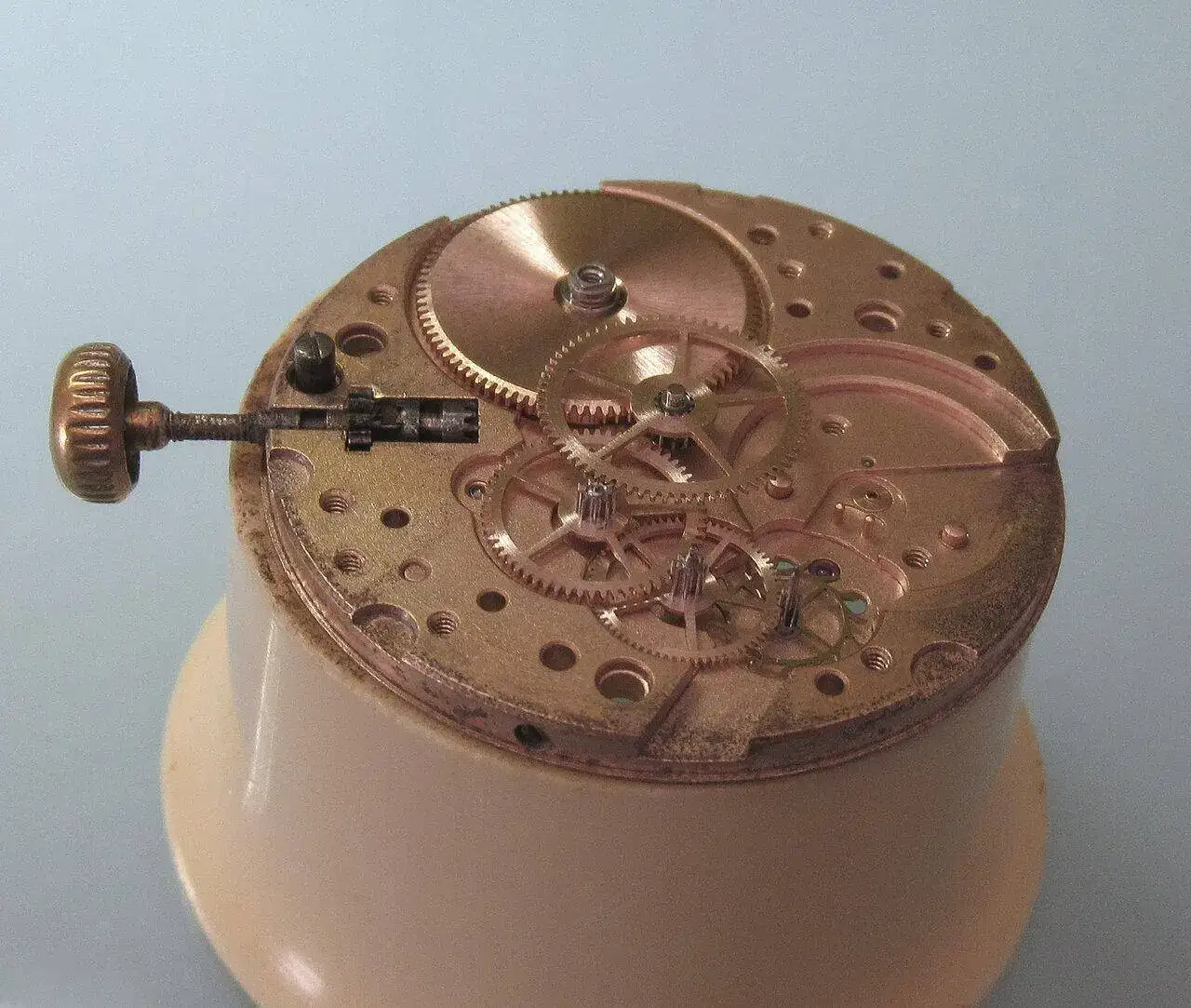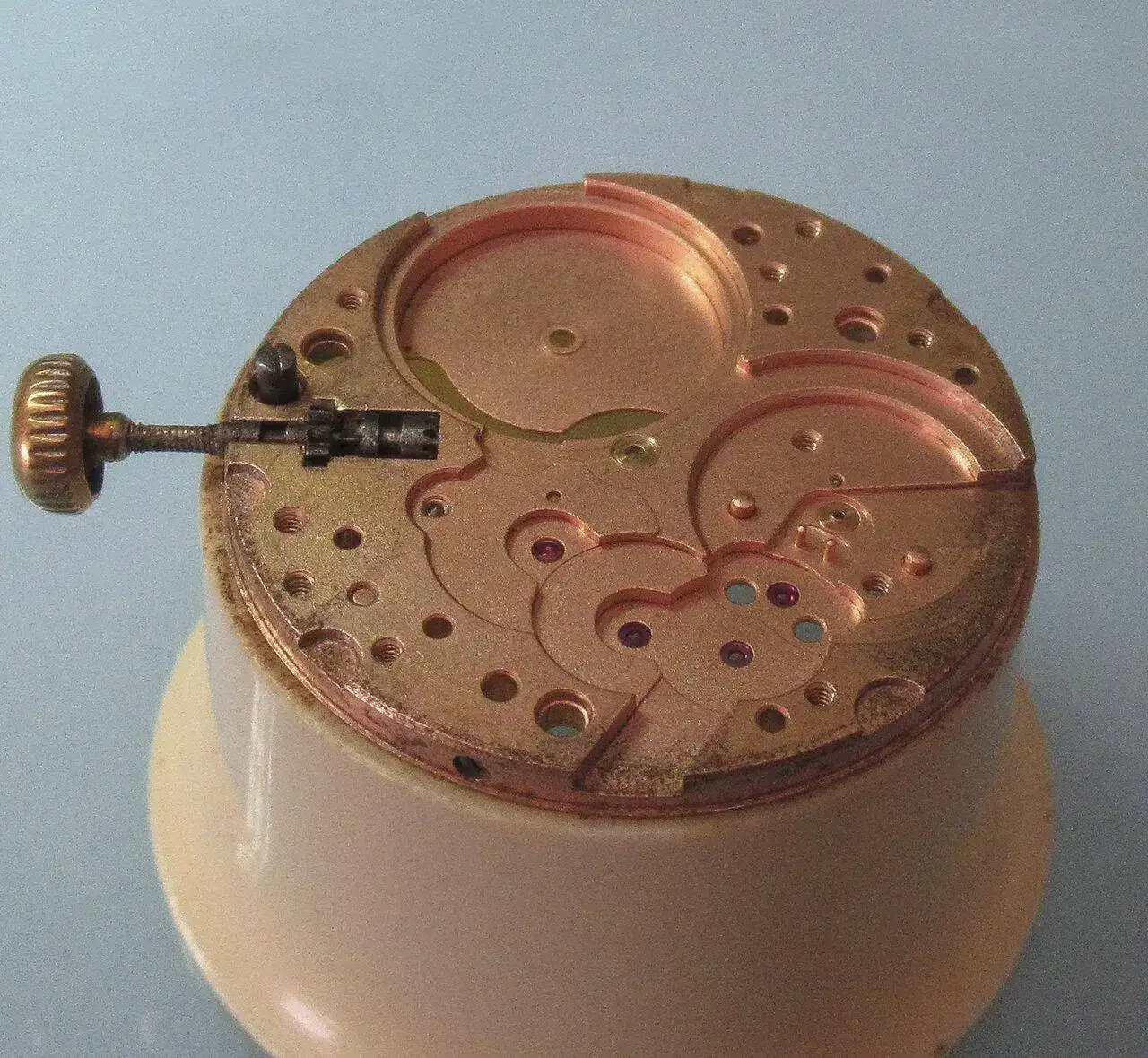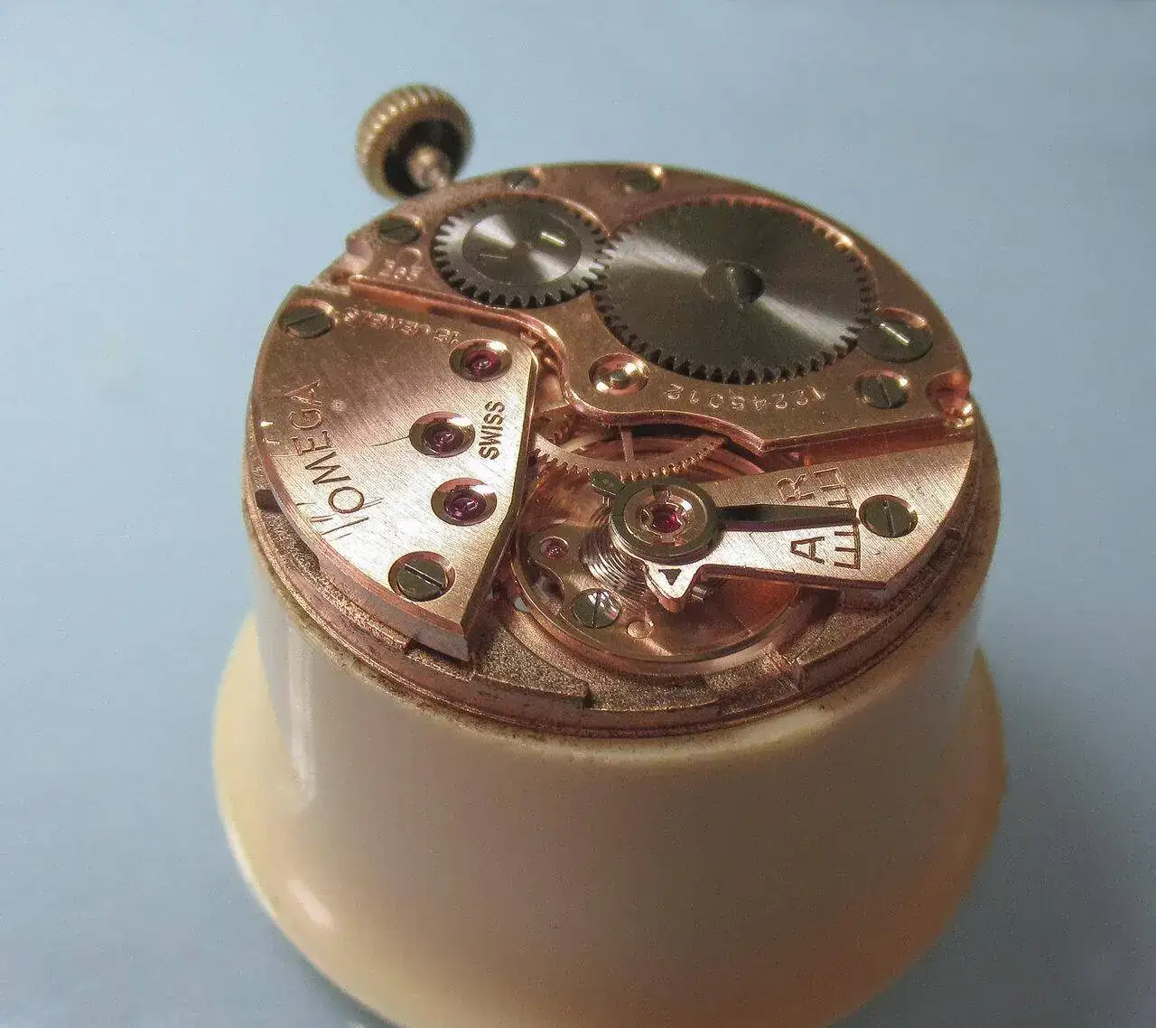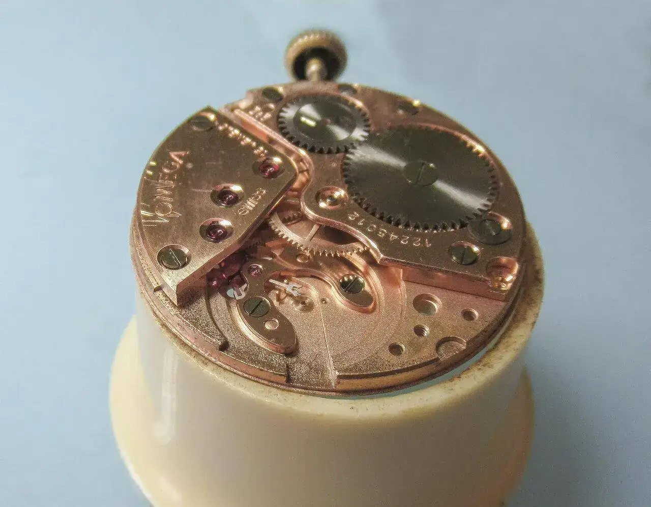 Esta vez le ha tocado a un Omega 265 que encontré ayer en un compro-oro (que raro, no?) con una esfera preciosa pero que el padre se la dejó al niño para que le pusiera Omega con el Rotring. No tenía corona y cuando fui a sacar la tija, que estaba entera allí, me la encontré soldada por óxido al piñón de canto. Alguien se acordará que el maestro Golipo (ande andará?) me enseñó, para un Aurore Villeret, que el óxido se quita bastante bien con vinagre de manzana. Y, efectívamente, así ha sido: lo oxidado se queda algo más oscuro pero puede valer. Total, todo desmontado, a la bañera y empieza el remontaje.