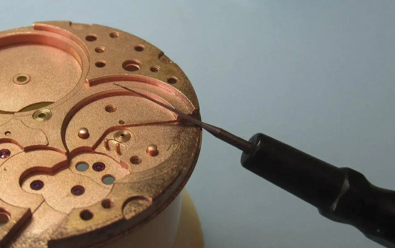yo, de mi cosecha, he aprendido a echar una gotita de aceite dentro del centro de los rubís con un picaceites muy fino que un día se despuntó. Va muy bien para que entren los pivotes de las ruedas aunque en este movimiento, por su tamaño como antes he dicho, lo hace todo muy fácil