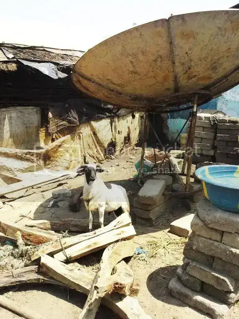 Aquí, en vez de perros, son las cabras las que guardan las posesiones de los lugareños.. en este caso, una antena parabólica..