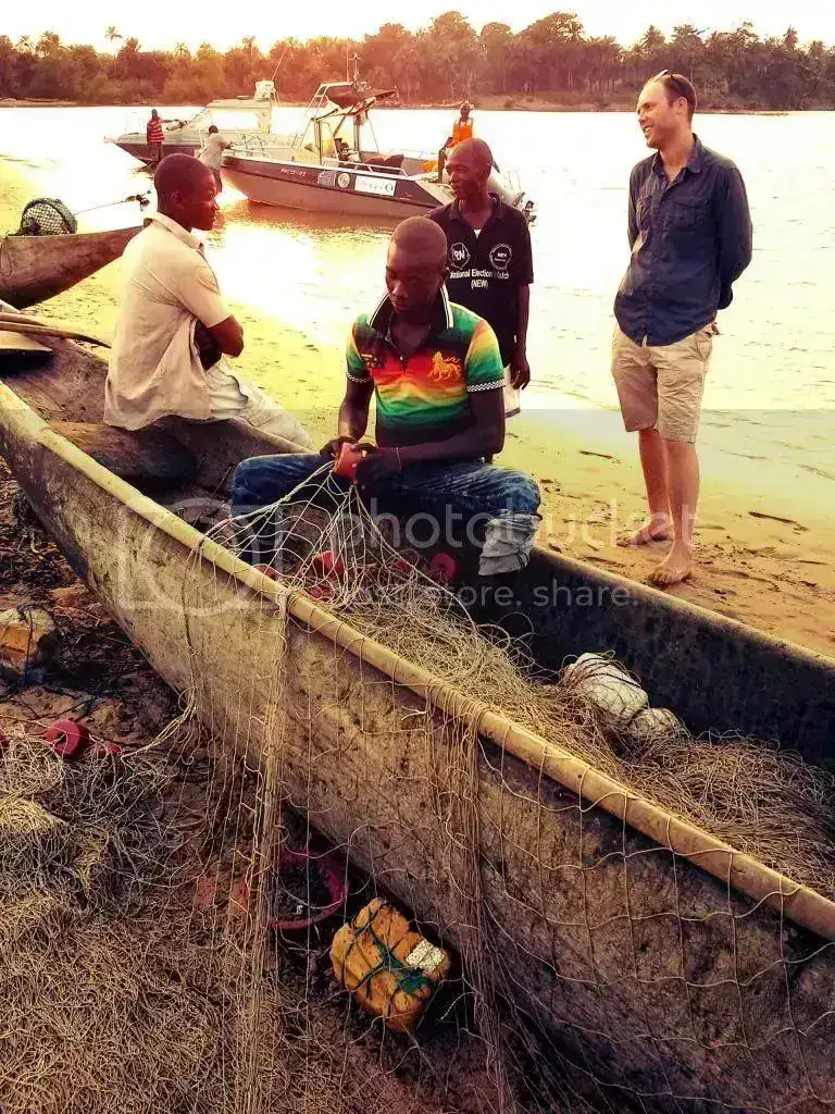 Tras ir a ver cómo ahúman el pescado, preparándolo para su transporte a las zonas del interior del país y Liberia, zarpamos rumbo a Banana Island donde haremos noche..