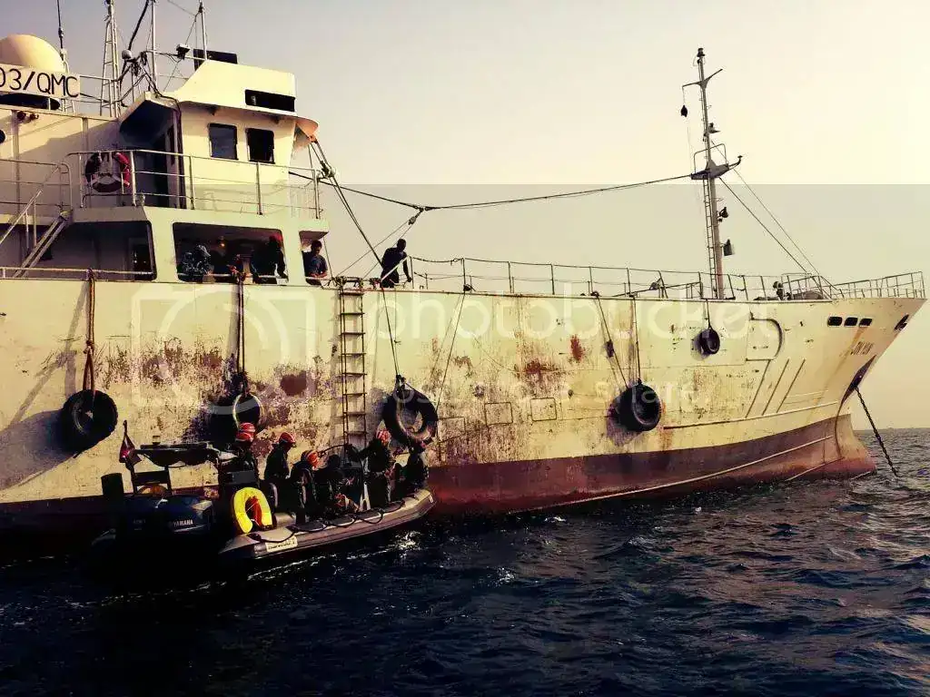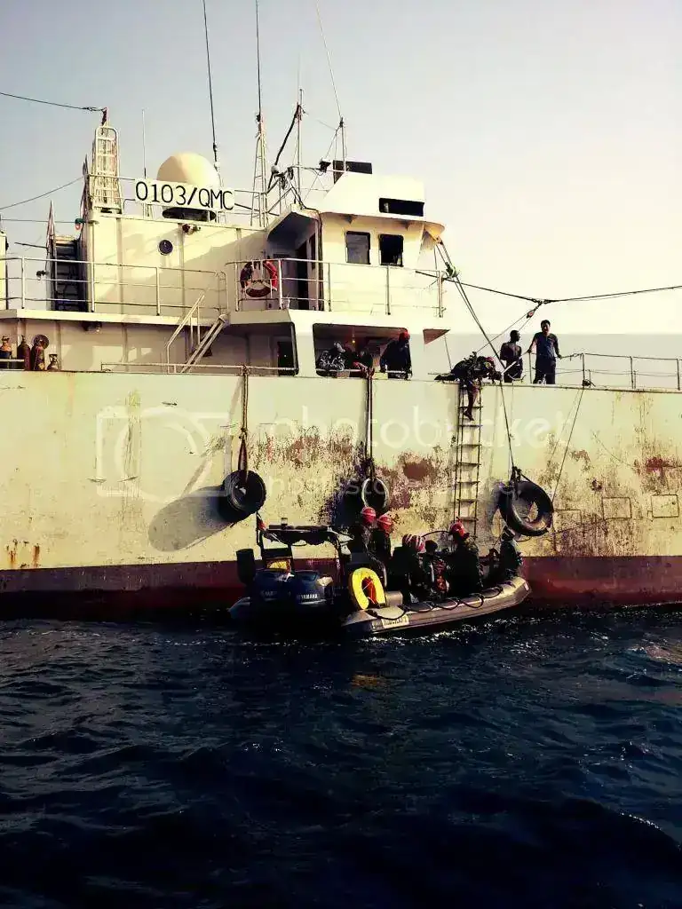 Ya, de regreso a Freetown, salimos con una unidad de la marina especializada en la interceptación y abordaje de barcos piratas. Durante la salida, tuvimos la ocasión de grabar uno de estos abordajes..