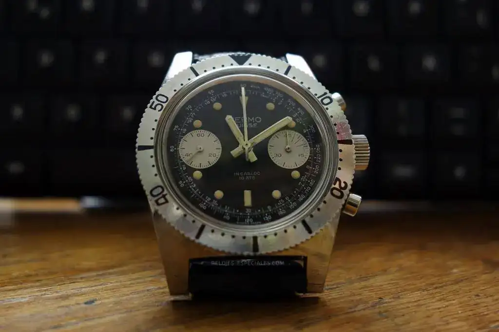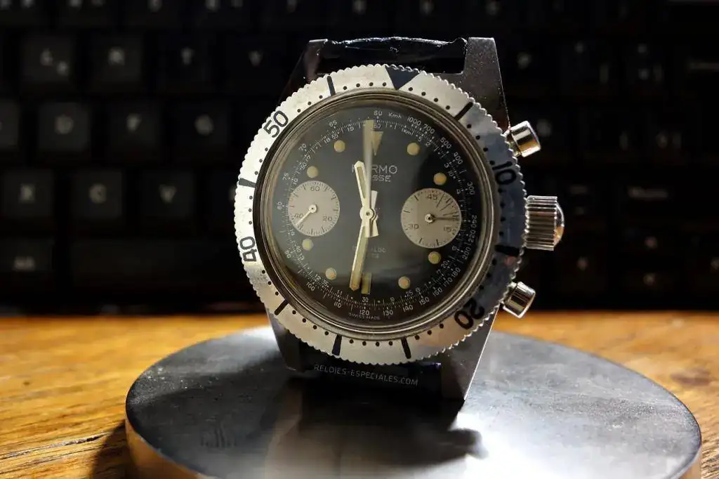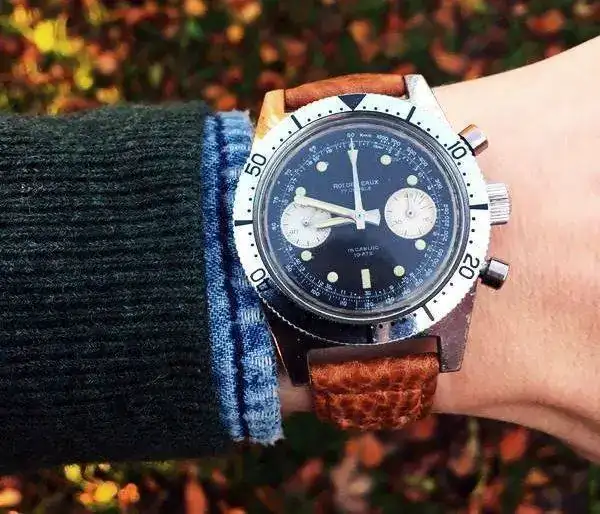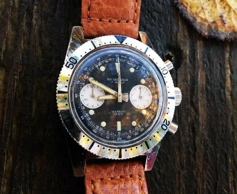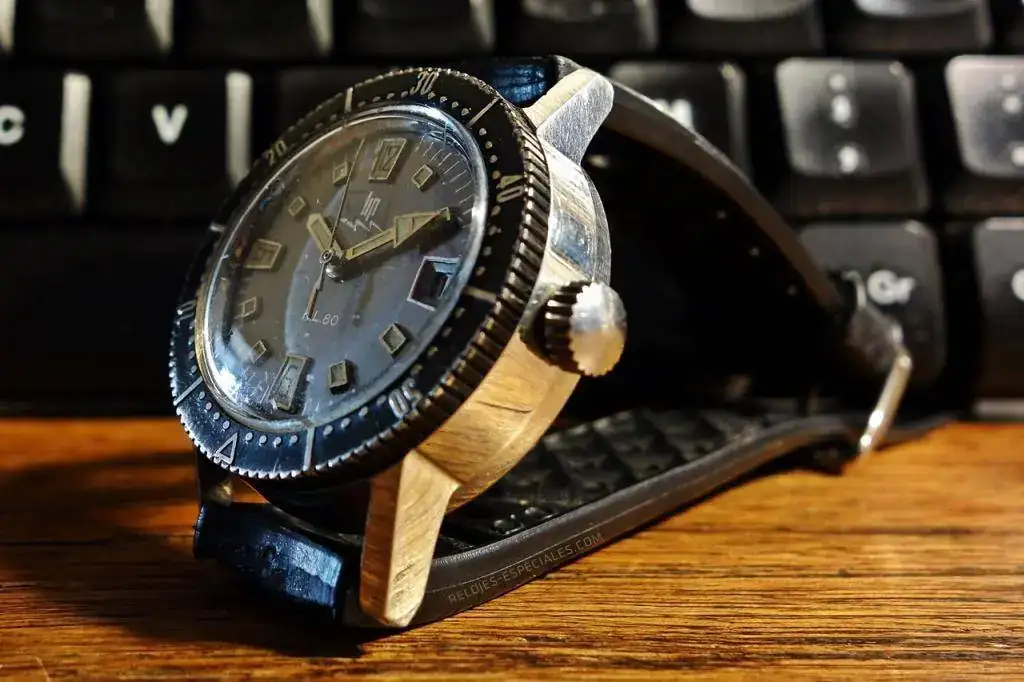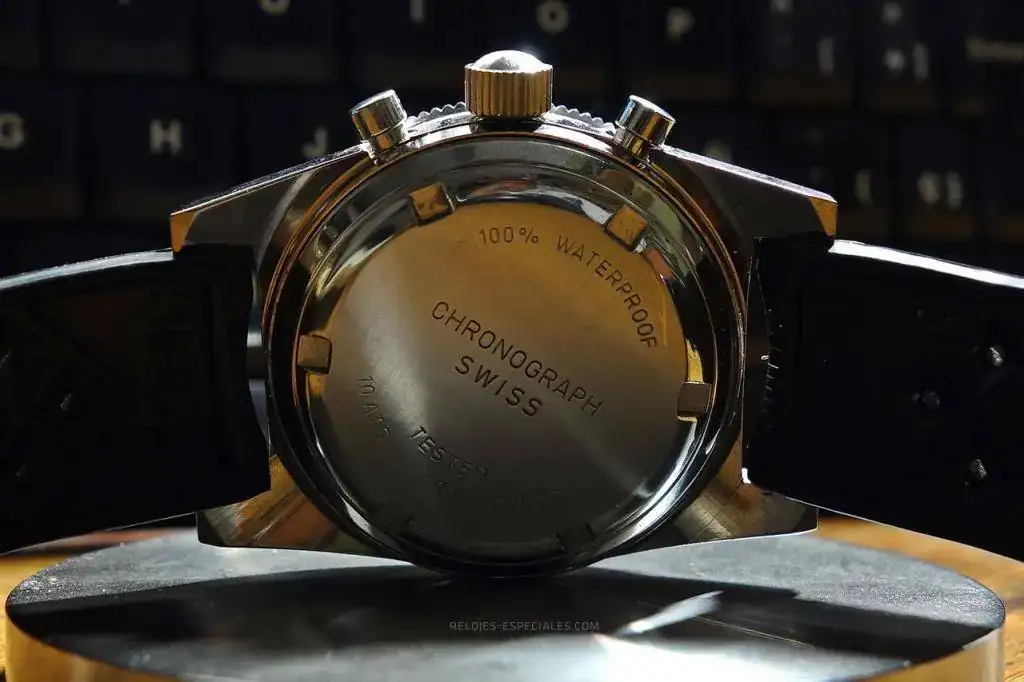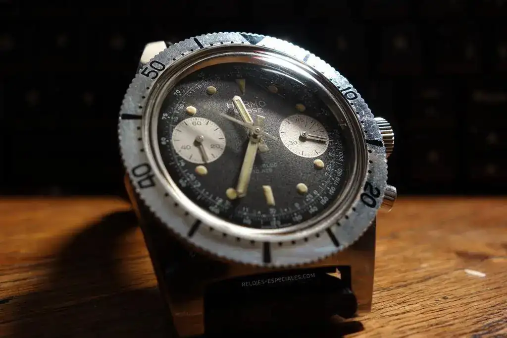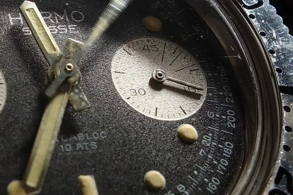 Desconocía la particularidad de secuencia del Landeron 248 (arranque a las dos, paro y reseteo a las cuatro), y la verdad es que le ha añadido un encanto eso, añadido, al reloj en general. No pongo foto de la luminiscencia, pero el tritio está casi virgen: todavía funciona divinamente. Encima con un Tropic genuina (swiss made) que dada su flexibilidad parece recién salida de su envoltorio.