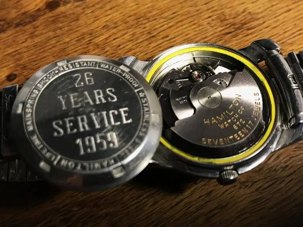 Extraña la grabada en la trasera, por qué estoy casi seguro que ese reloj es de 1960.
