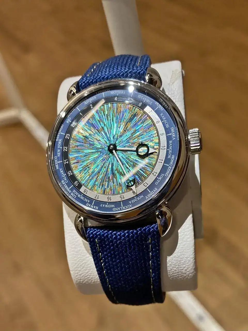 Hermés, ya lo dije, se ha ganado a pulso su presencia en el universo relojero. No sólo porque ya estaba ahí desde hace muchos años encargando relojes a marcas reputadas como Universal Geneve, sino porque en estos últimos años se ha convertido en socio de Vaucher Manufacture y trabaja codo con codo con Agenhor, un creador independiente de calibres que hacer realidad las fantasías poéticas de Hermés. Este Horas del Mundo satelital es un buen ejemplo de ello.