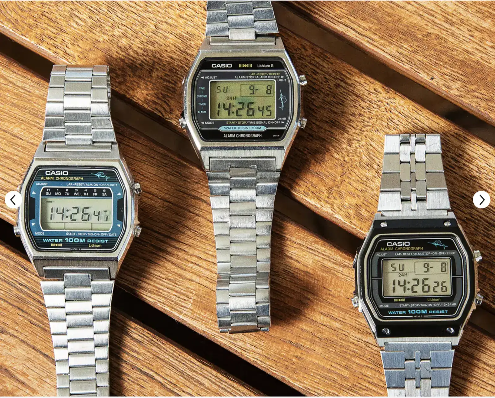 Cabría esperar que el líder de los relojes digitales: Casio, reeditara su amplio archivo de relojes en acero, sin embargo, esas características son prácticamente imposibles de encontrar en los relojes de este estilo actualmente en producción. Las reediciones en acero que Casio ha lanzado recientemente se limitan a los